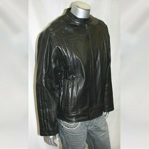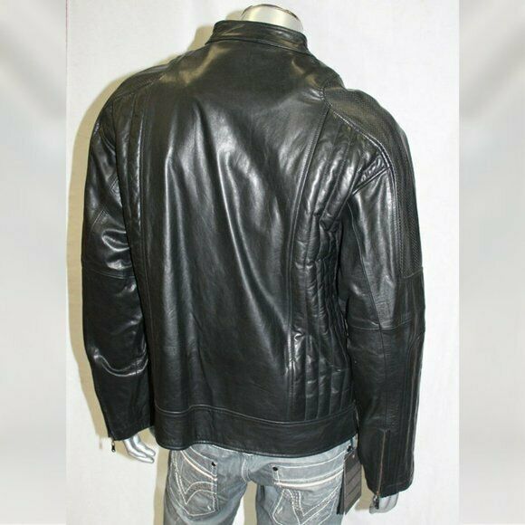 Men's Black Motorcycle Genuine Leather Jacket By Sean John NWT