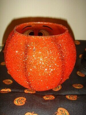 Department 56 Silly Glitter Pumpkin Face Tealight Holder, Used.