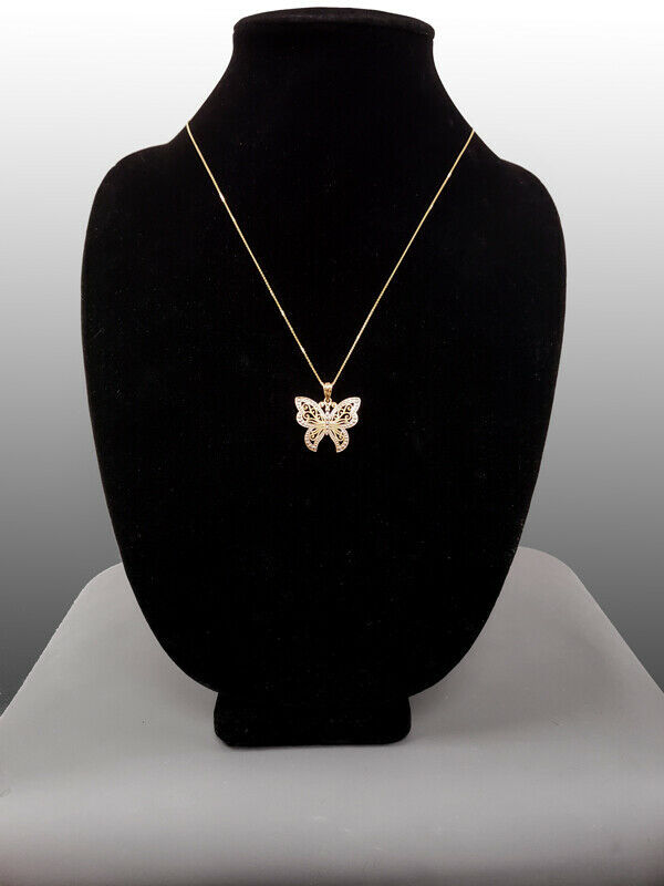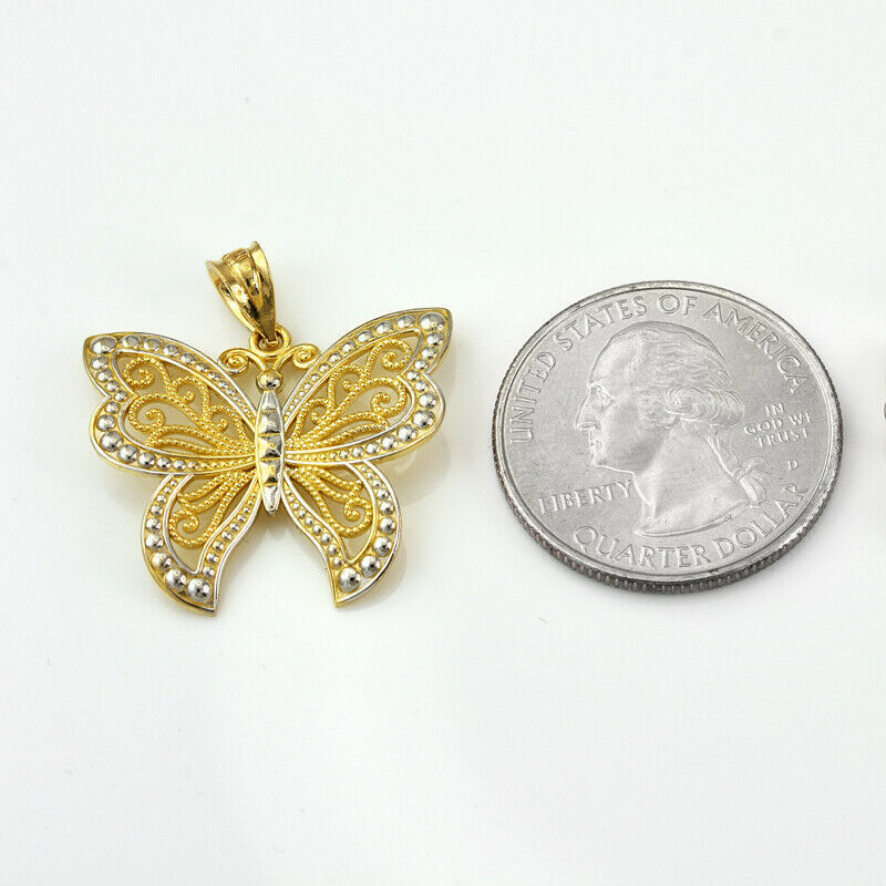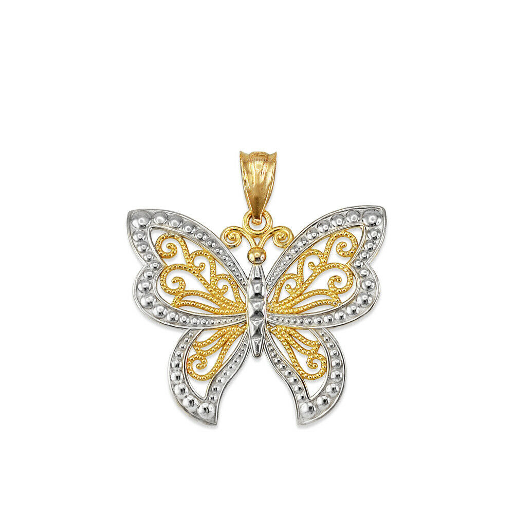Two-Tone Gold Filigree Butterfly Pendant Necklace