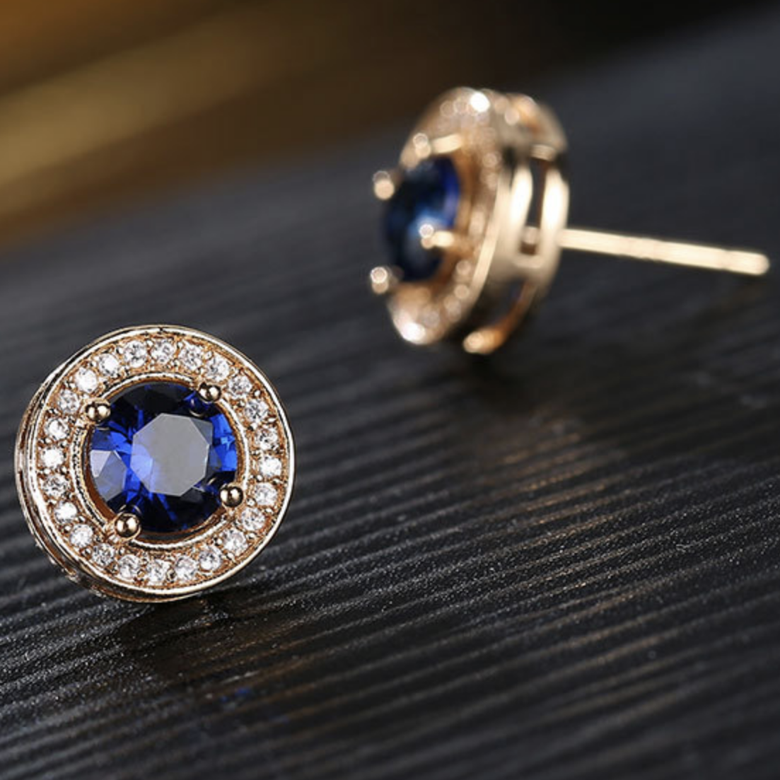 4.20Ct Coupe Ronde Saphir Bleu Halo Boucles and 50 similar items