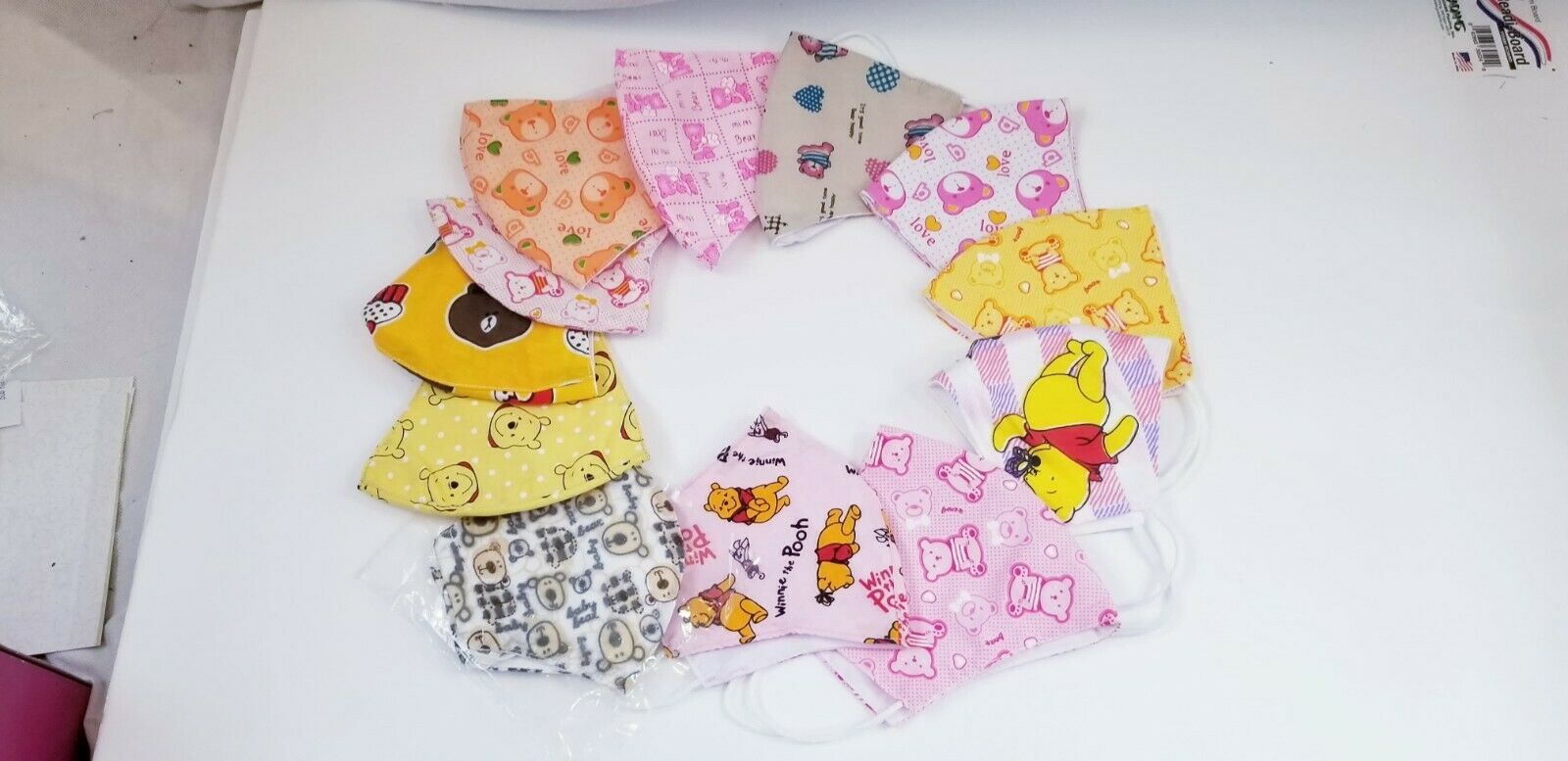 3 pack HANDMADE FACE COVER Adult teen MASK love Pooh Happy Bear colorful pink