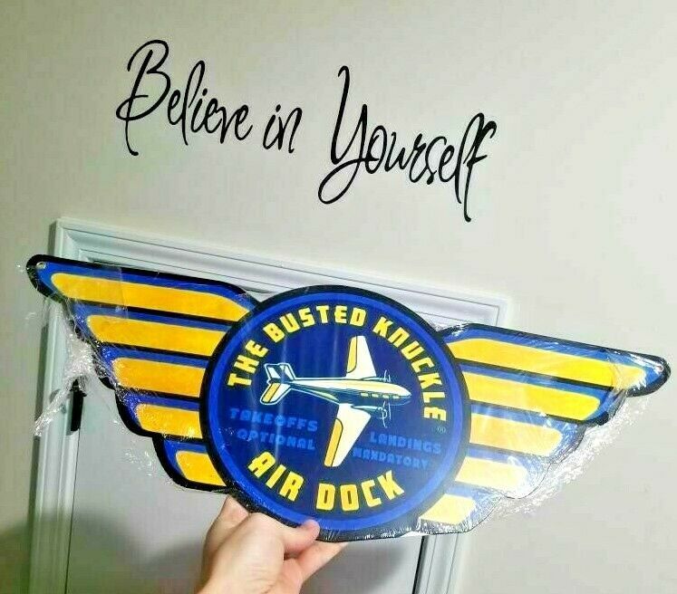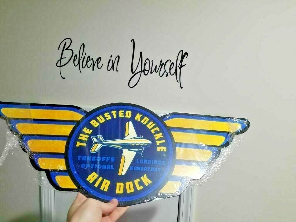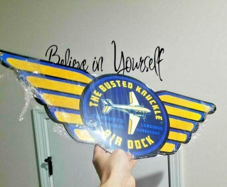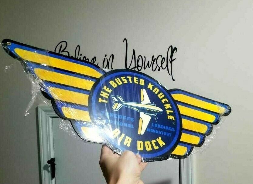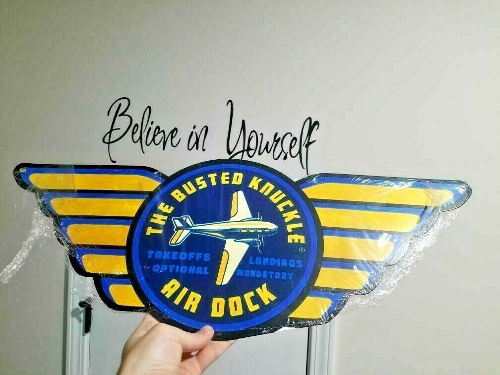 New Sealed HUGE 26" Air dock plane gold wings plane STEEL aviation sign Take Off Landing STEEL sign Air dock plane wings aviation garage steel metal sign this is 26 X 10 inches
