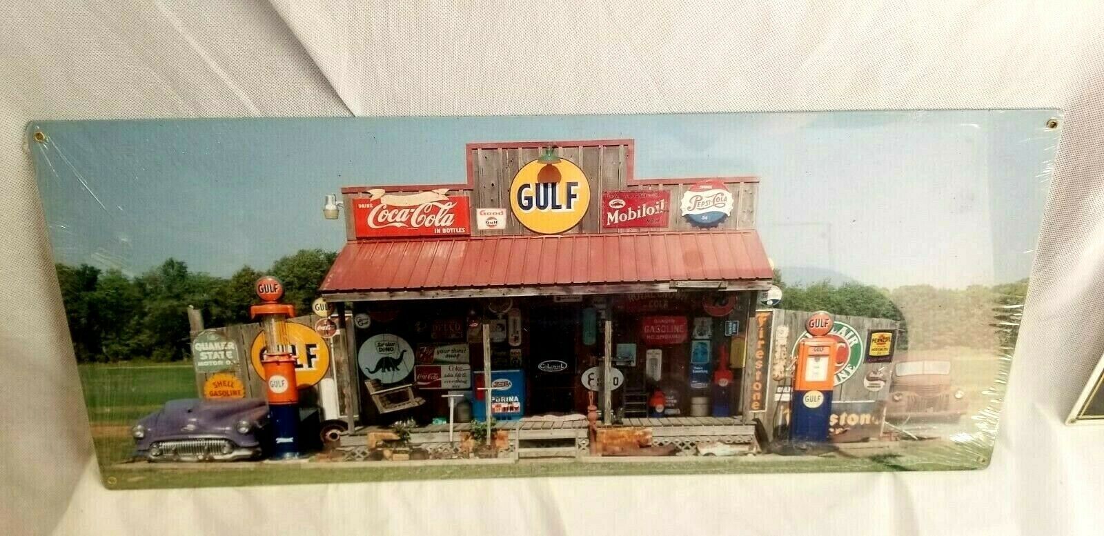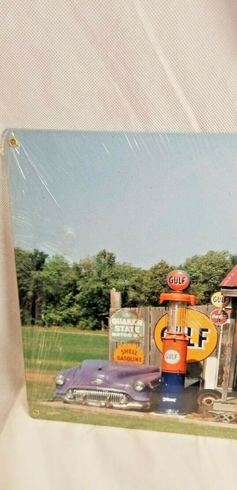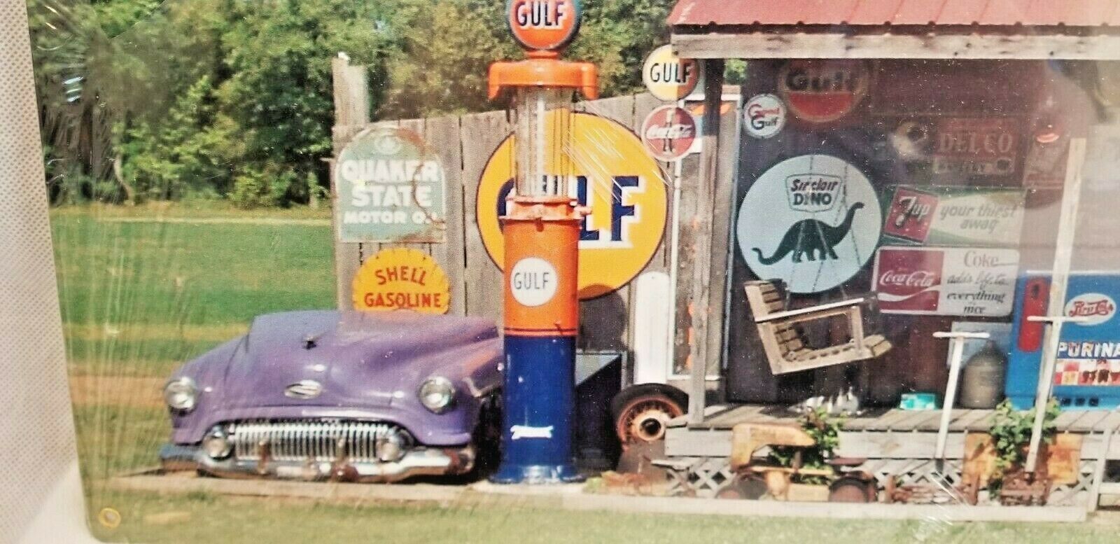 Brand new sealed. HUGE 24" Old country store front collector signs Muscle Car Garage Open all night Full service gas oil pump sign is very colorful. It reads, Cut-out custom shape measures 10 inches by 24 inches and weighs 2lb(s) Hand made in the USA using heavy gauge American steel Plate !