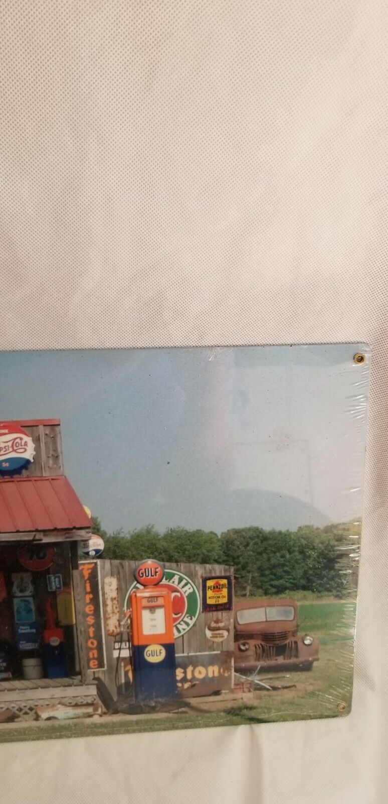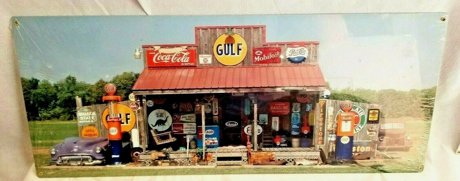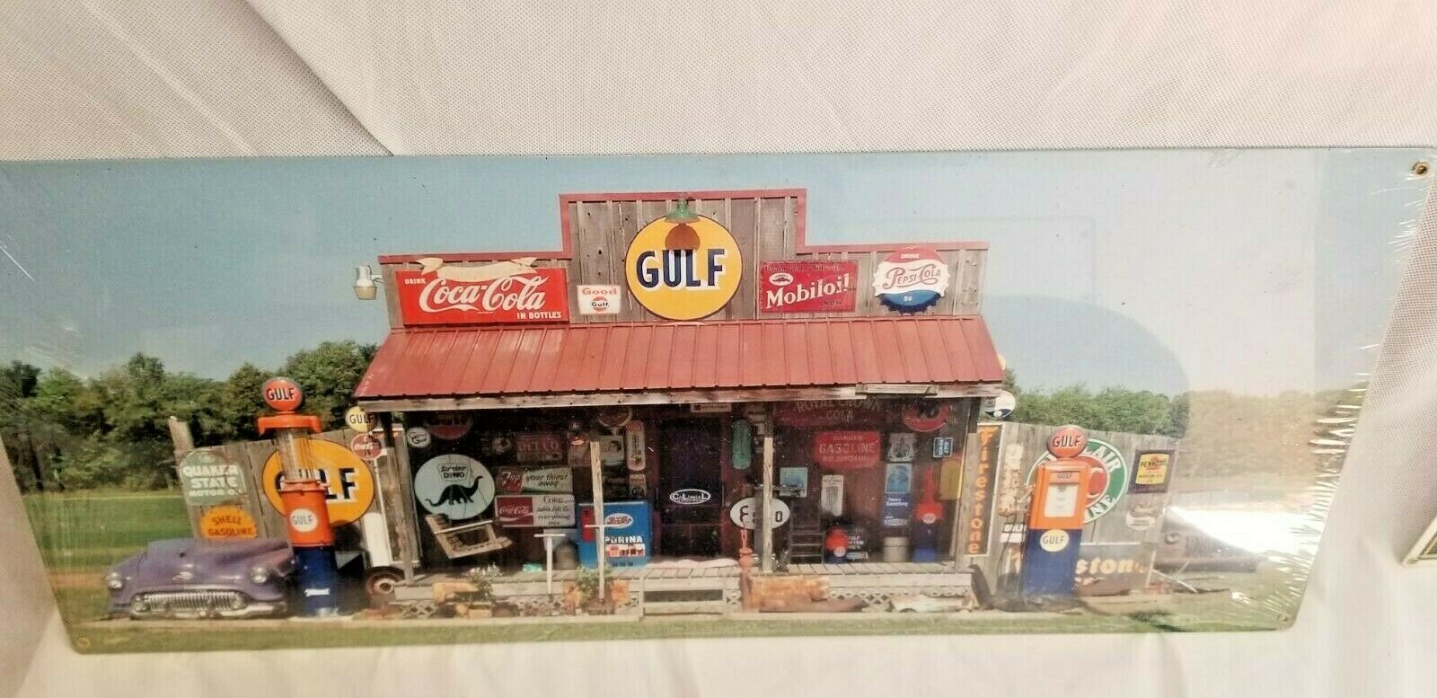 Brand new sealed. HUGE 24" Old country store front collector signs Muscle Car Garage Open all night Full service gas oil pump sign is very colorful. It reads, Cut-out custom shape measures 10 inches by 24 inches and weighs 2lb(s) Hand made in the USA using heavy gauge American steel Plate !