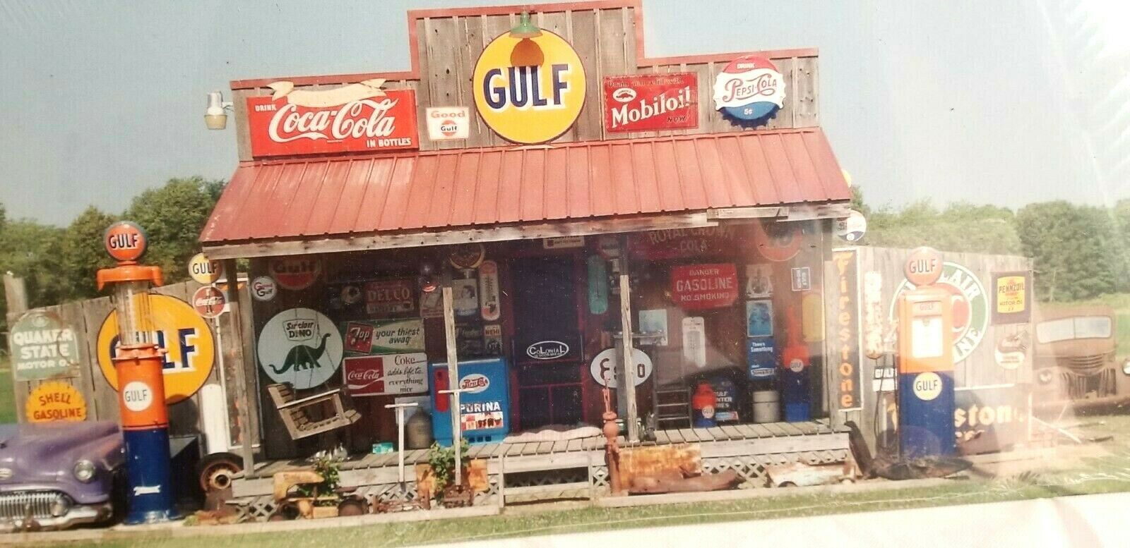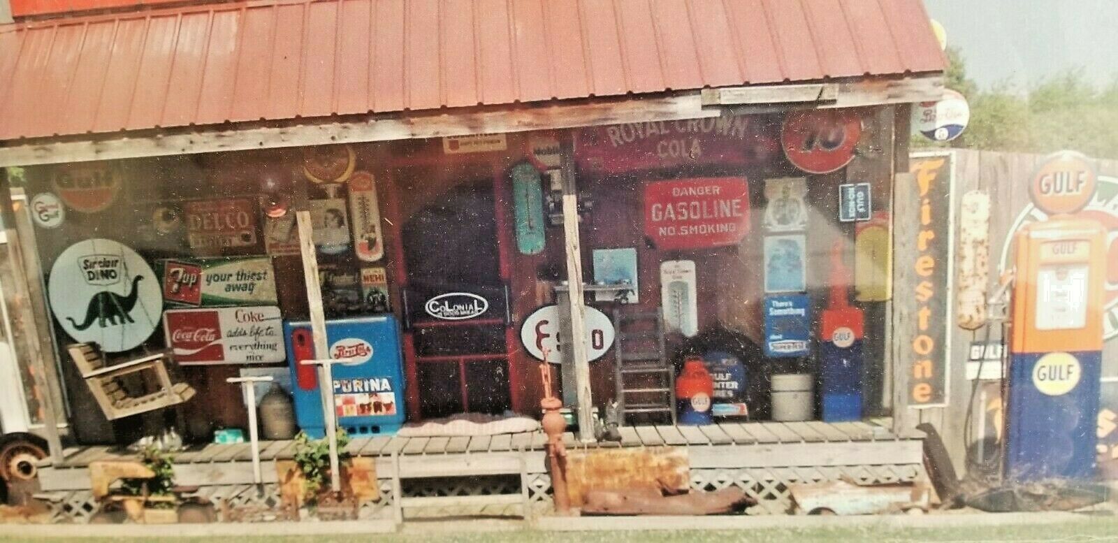 24" HUGE Old country store front collector signs Shell oil auto gulf soda pump +