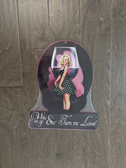 16" wine women sign Girl Wine Me Up 3d cutout retro USA STEEL plate