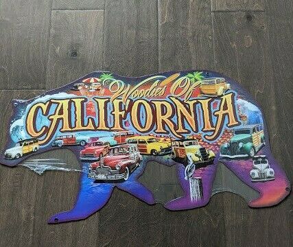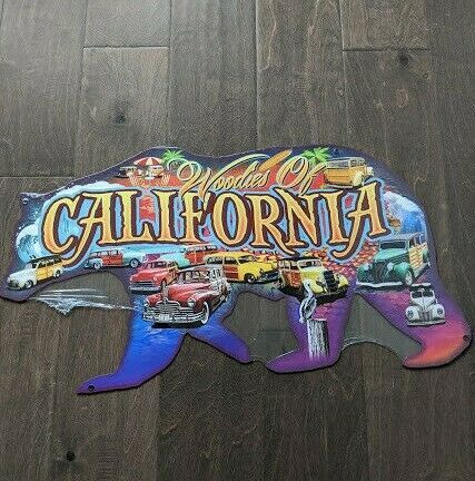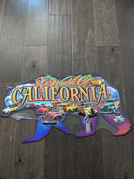 23.5" Woodies of CALIFORNIA Bear 3d cutout retro USA STEEL plate display ad Sign