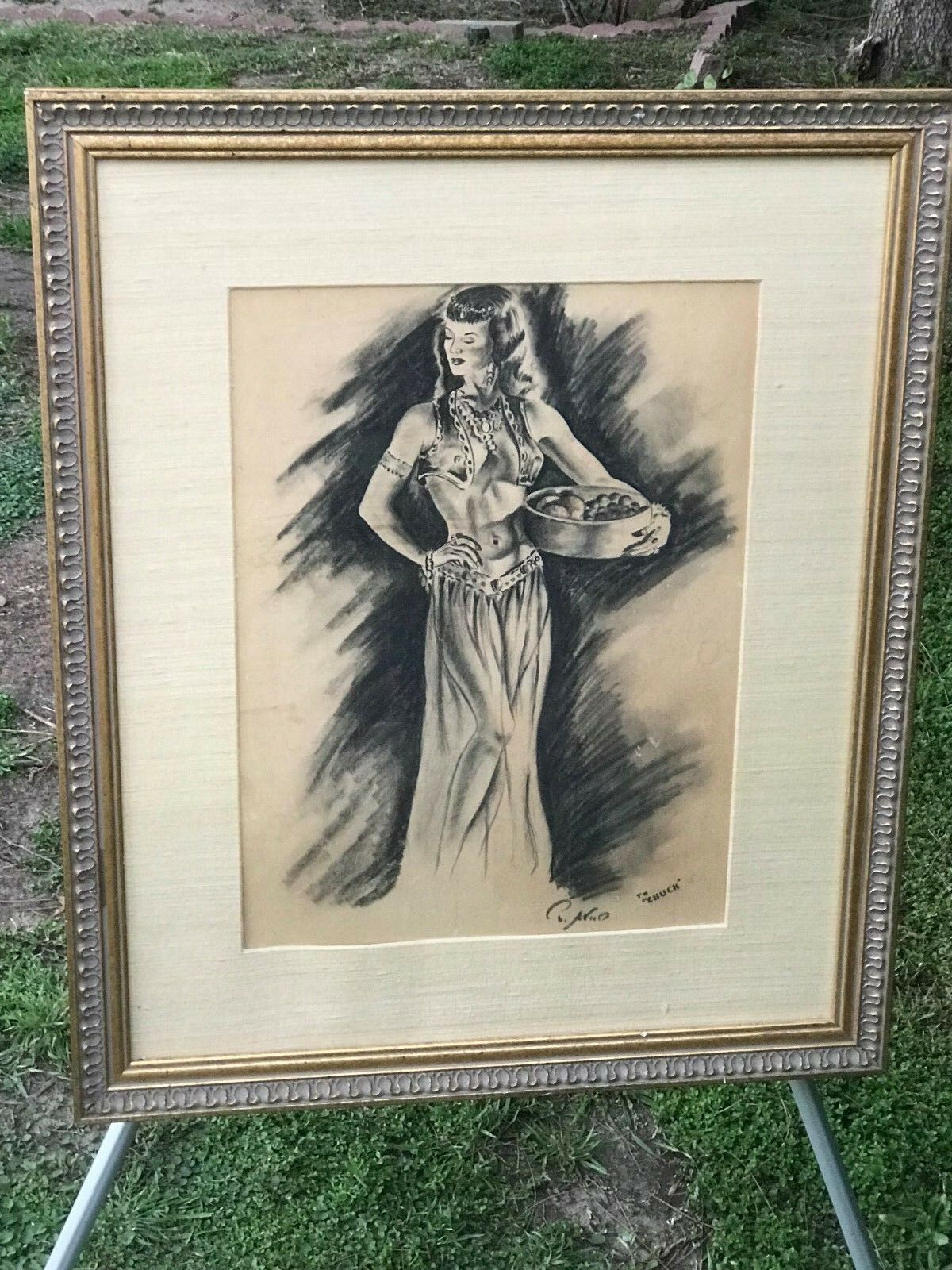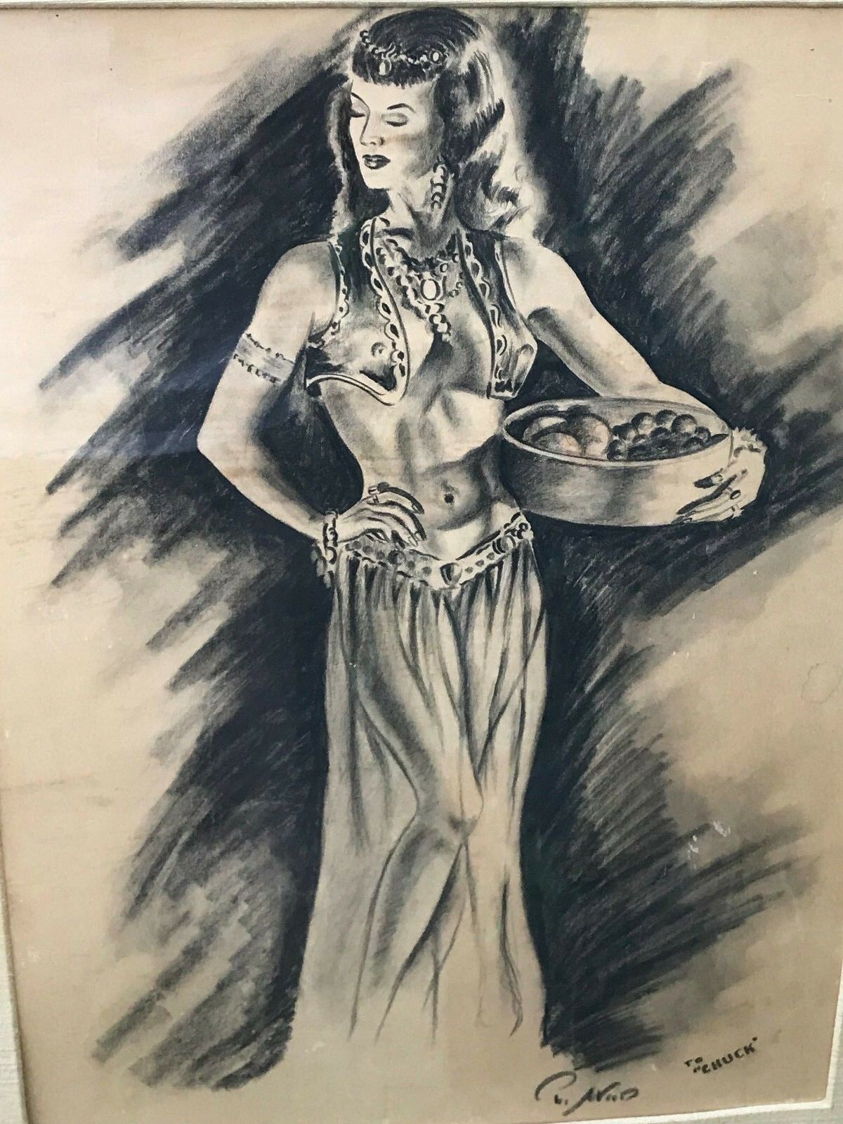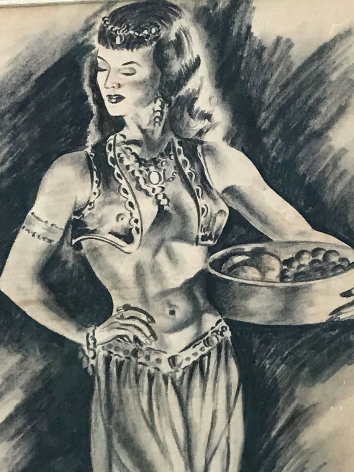 PAUL WOOD Original 1950s MODERN VINTAGE *Harem Girl* SIGNED CHARCOAL DRAWING