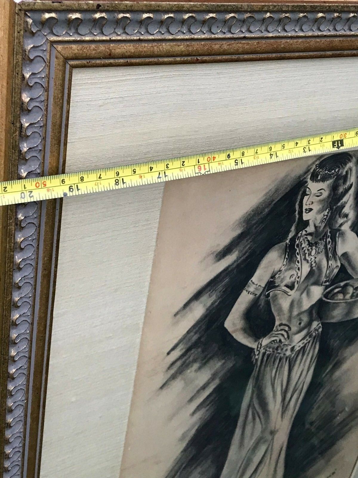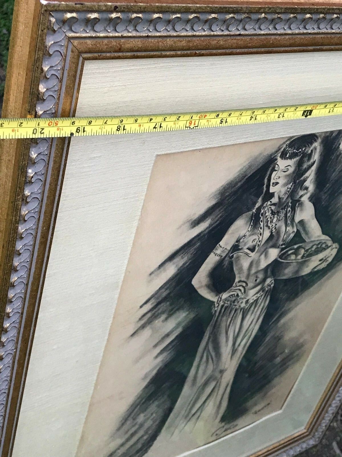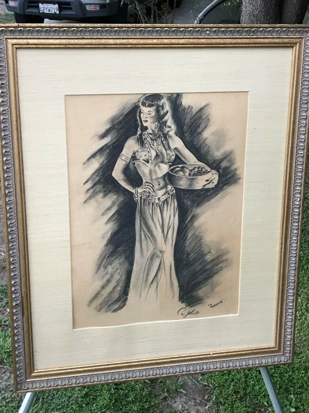 PAUL WOOD Original 1950s MODERN VINTAGE *Harem Girl* SIGNED CHARCOAL DRAWING