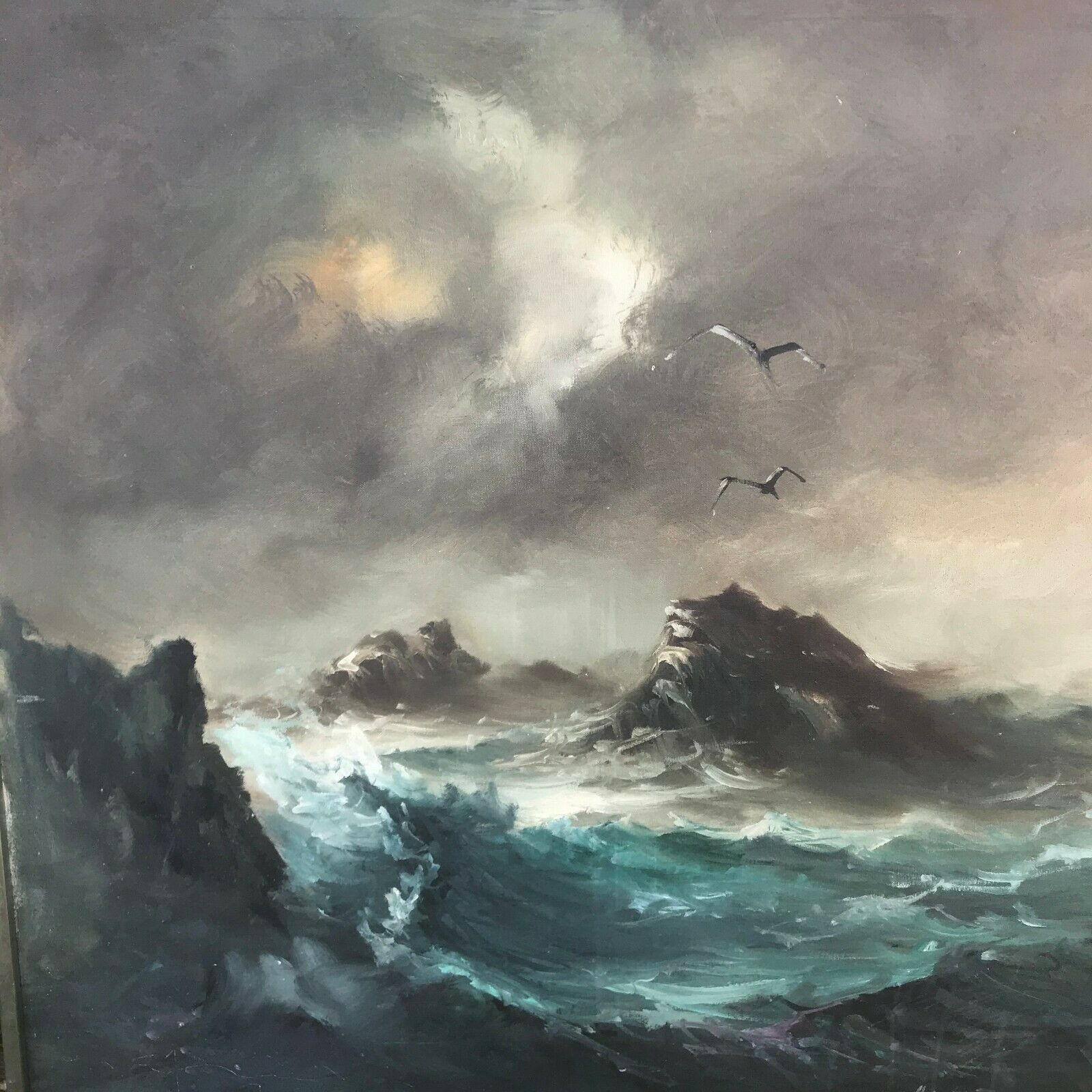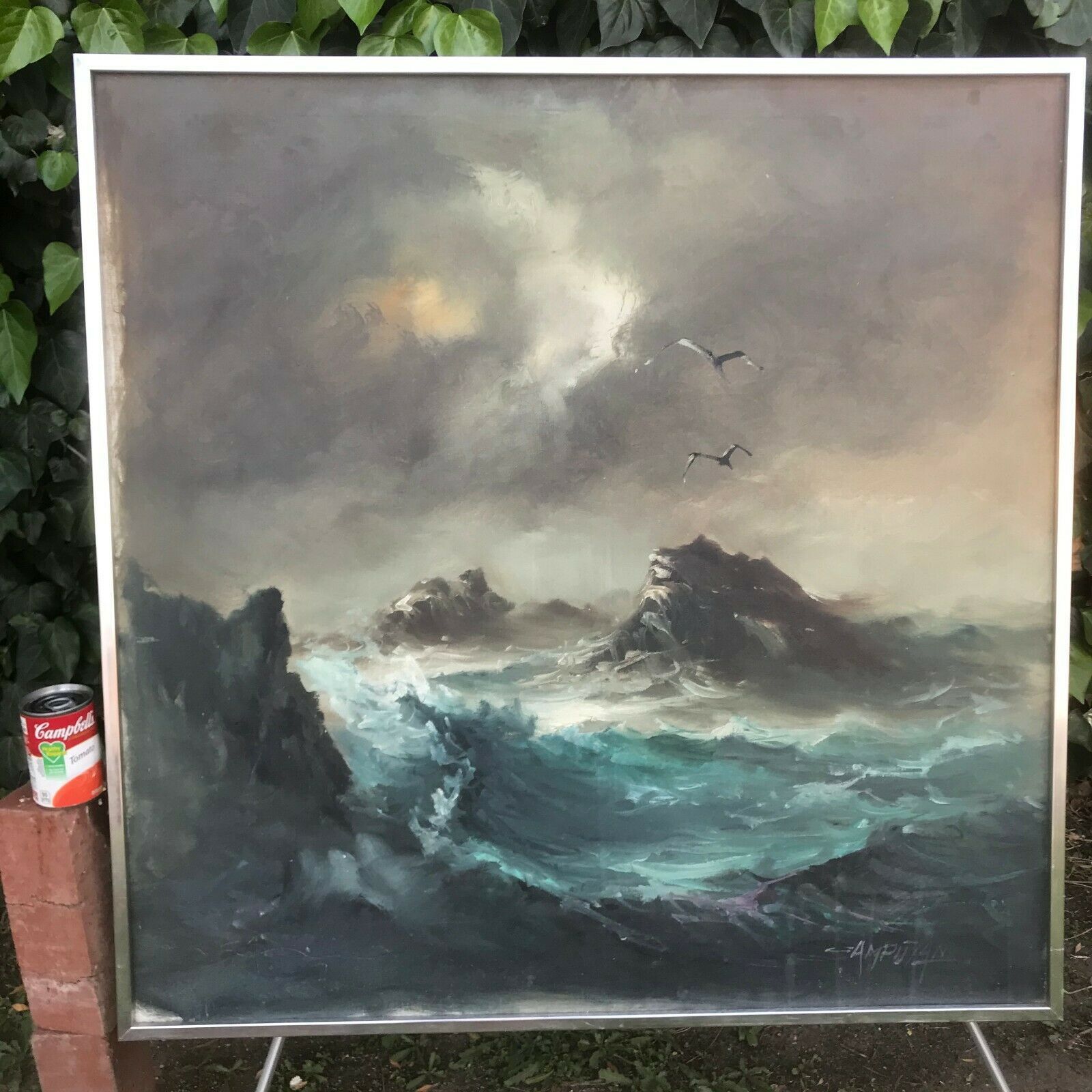 JOSE LUIS CAMPUZANO Original 1950s HUGE SEASCAPE MODERN IMPRESSIONIST Oil Canvas