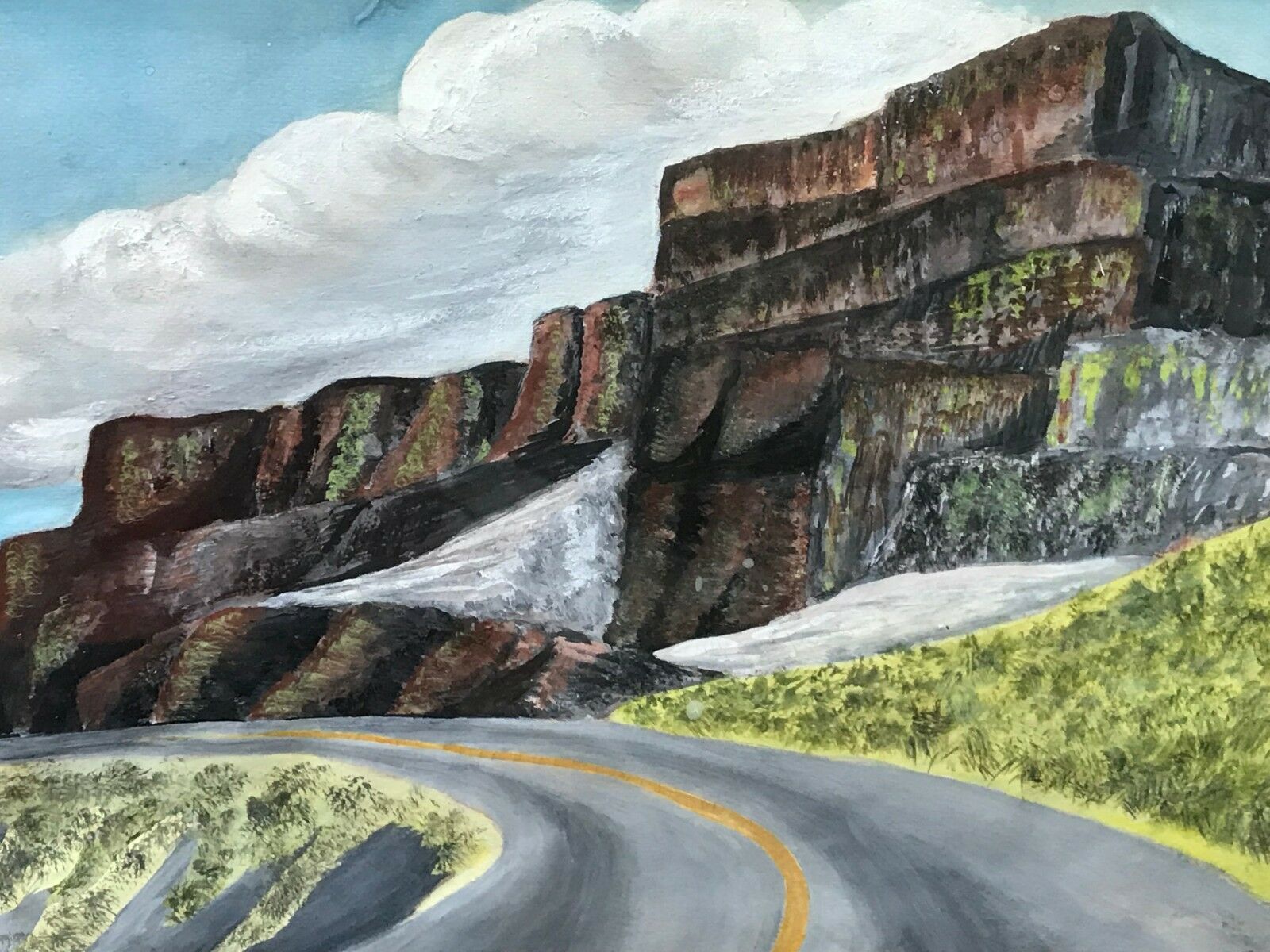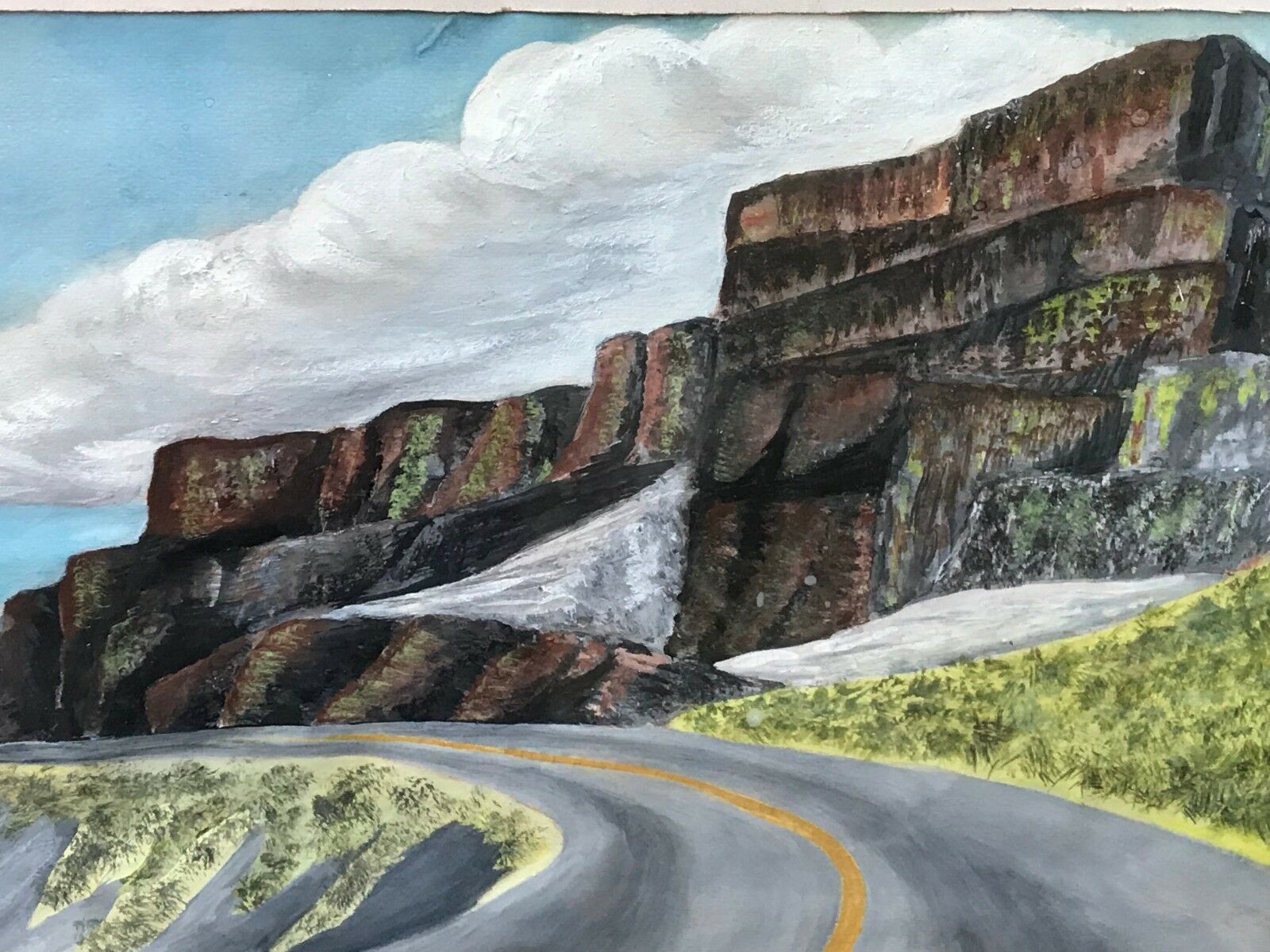 Joan Heppell was a 20th Century artist based in Seattle. She is best know for sweeping landscape vistas and still life works in oil, watercolor and pastels. She started her art career at an early age winning awards in the late 1930s. Her work reflects an era of post WII economic and geographic expansion, as the modern automobile became a effective and popular tool for Americans to relocate, as well as travel the country,