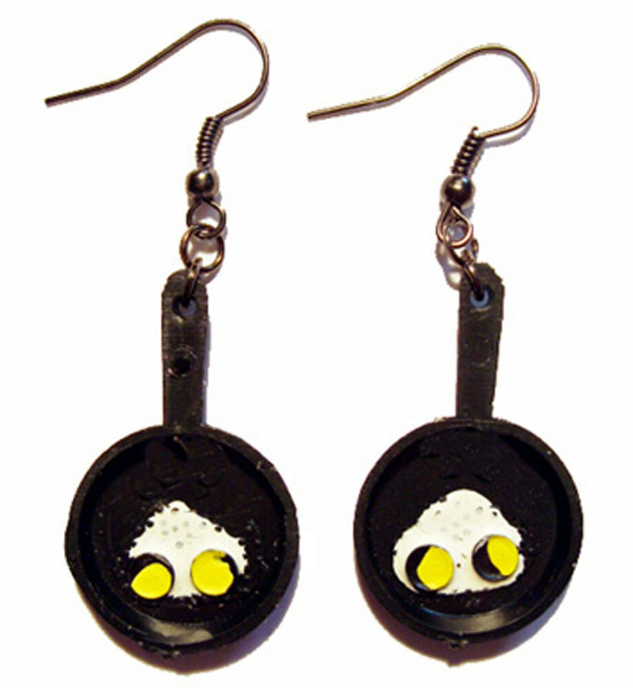 Funky Vintage FRYING PAN FRIED EGGS EARRINGS Retro Country Cook Costume Jewelry