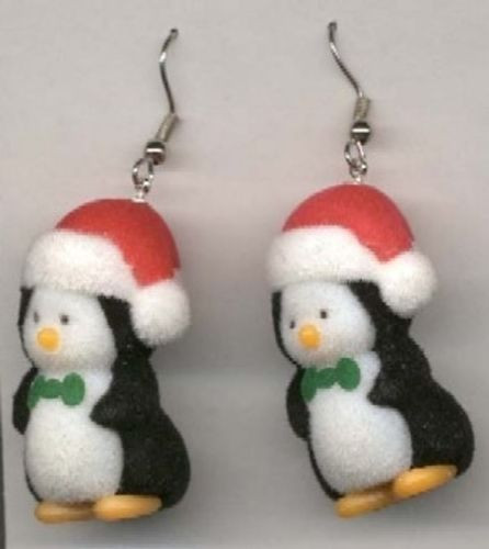 Fuzzy Penguin Santa Funky Earrings Flock and 48 similar items