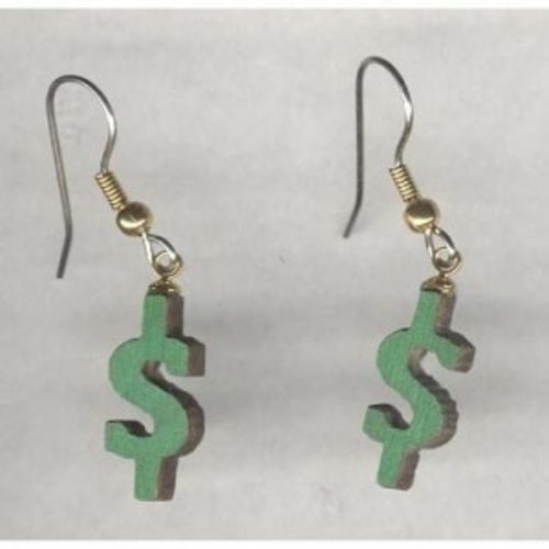 Funky DOLLAR SIGN EARRINGS-Bank Teller Cash Money Shopping Novelty Jewelry-WOOD