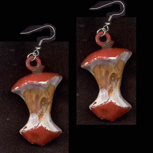 Retro 3D Drop APPLE CORE Funky EARRINGS Teacher Food Fruit Charm Novelty Jewelry