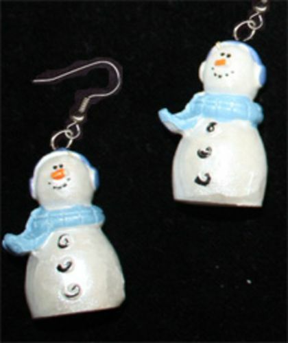 3D SNOWMAN Funky EARRINGS White Blue Christmas Winter Holiday Novelty Jewelry-D
