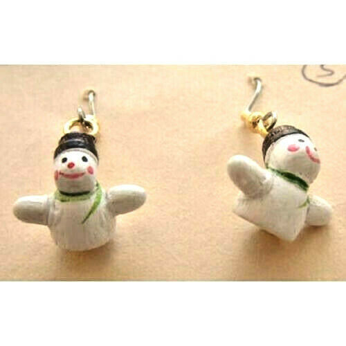 Retro Vintage Tiny 3D Wood SNOWMAN Novelty EARRINGS Winter Holiday Funky Jewelry