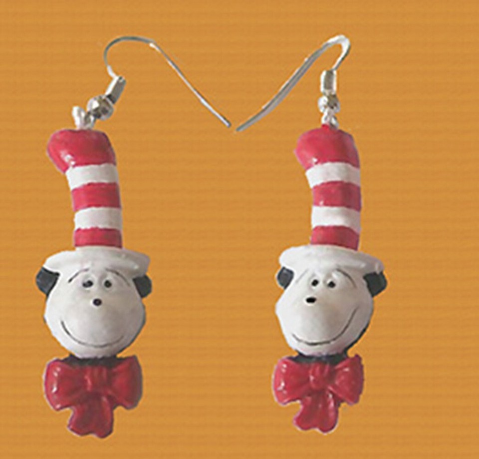 Retro Dr Seuss CAT-in-the-HAT HEAD Funky EARRINGS Costume Charms Novelty Jewelry