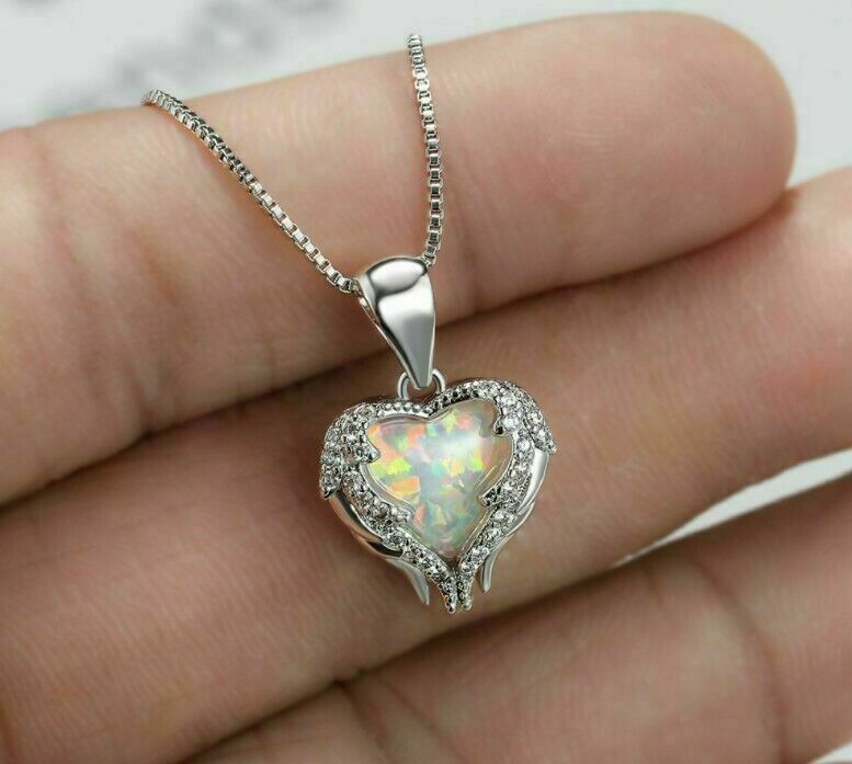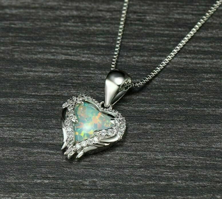 Halloween Spécial - 2Ct Coeur Coupe Feu Opale Halo Pendentif 14K Blanc or Sur