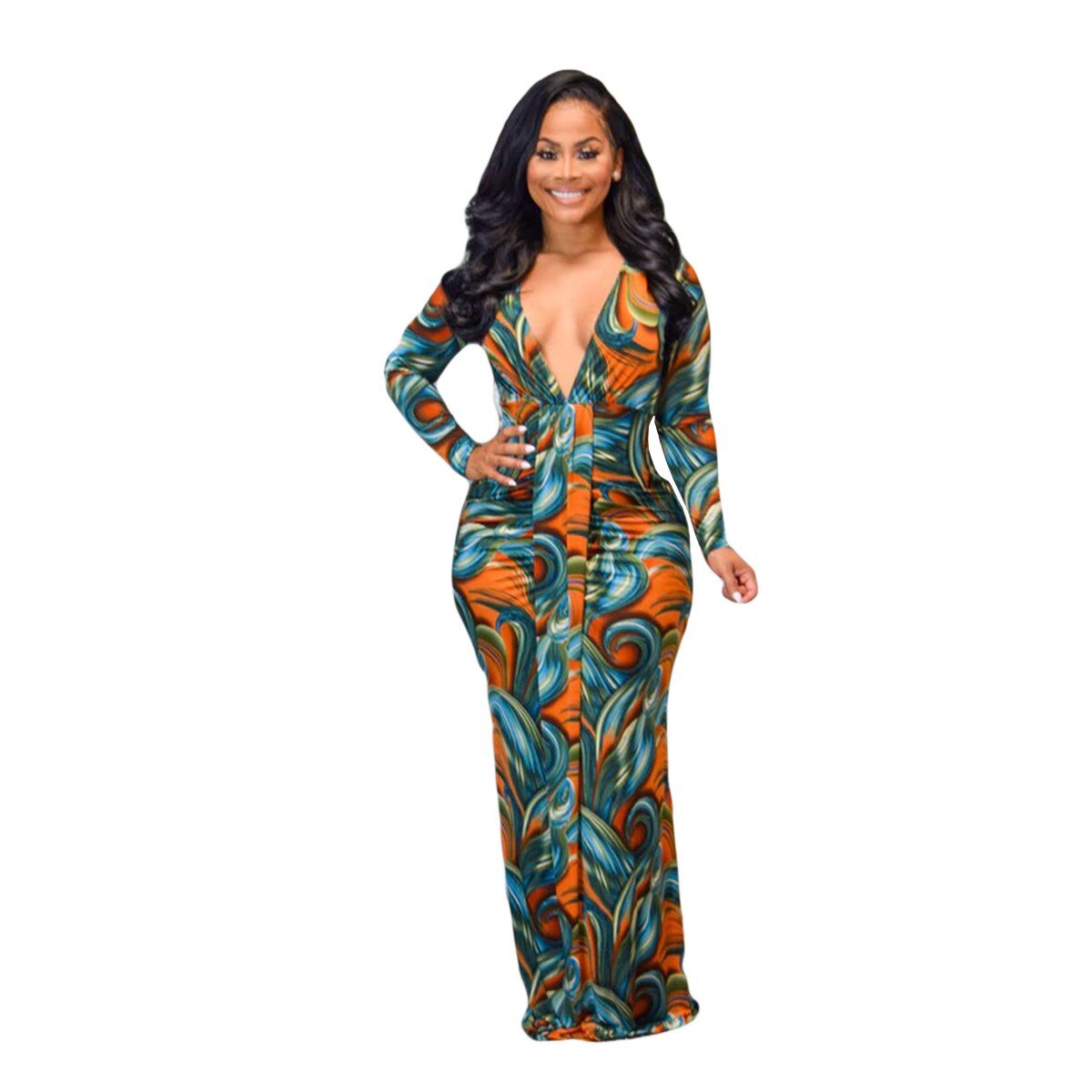 Long Sleeve V Neck Chic Printed Maxi Dress and similar items