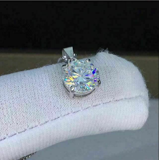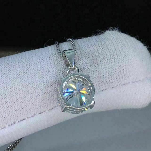 Halloween Spécial - 3Ct Moissanite Rond Solitaire Pendentif 14K Blanc or Sur