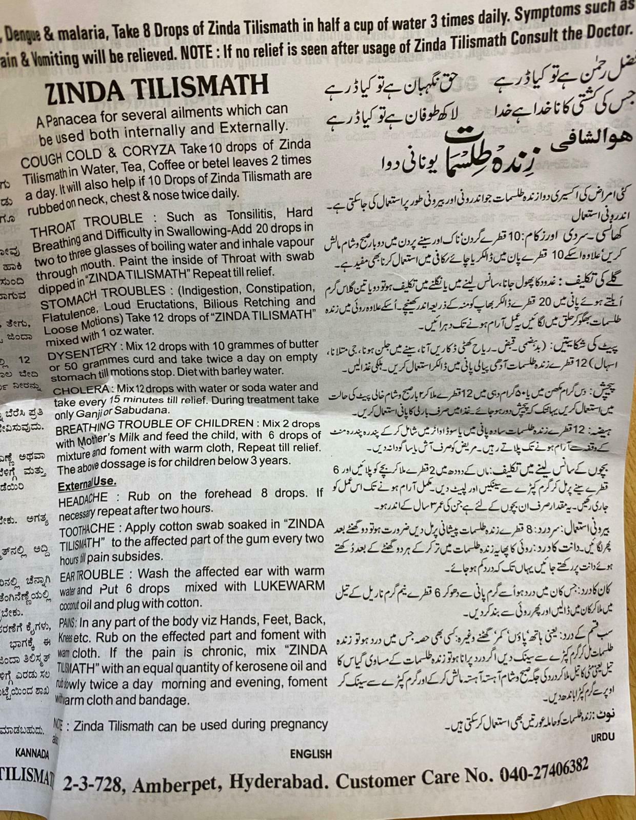 zinda tilismath unani remedy 15ml used for general wellness