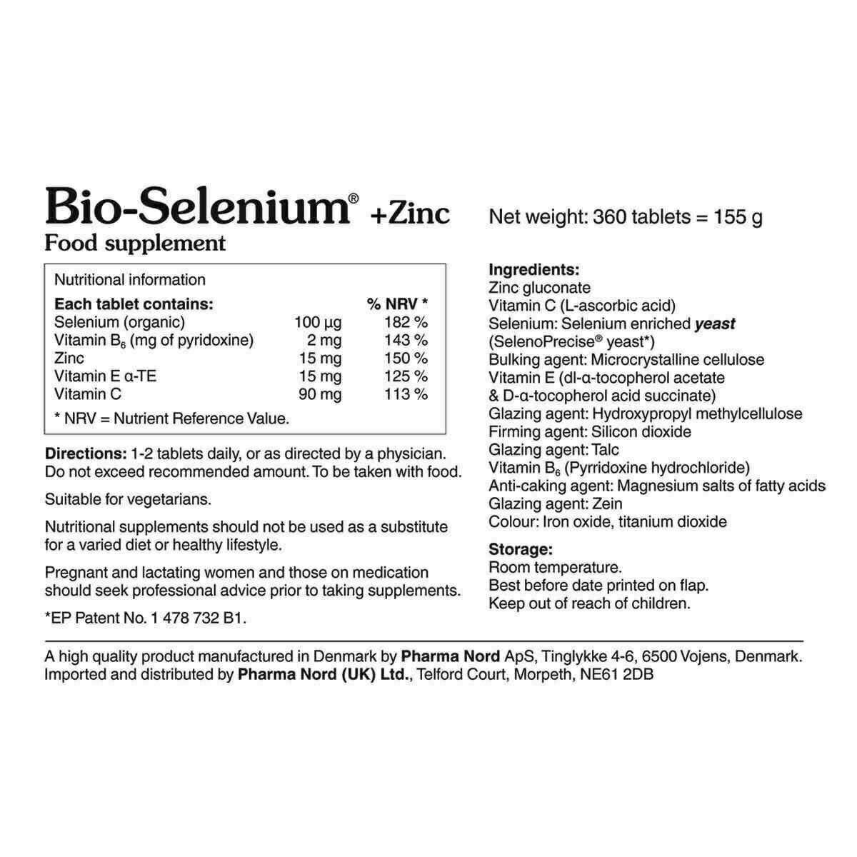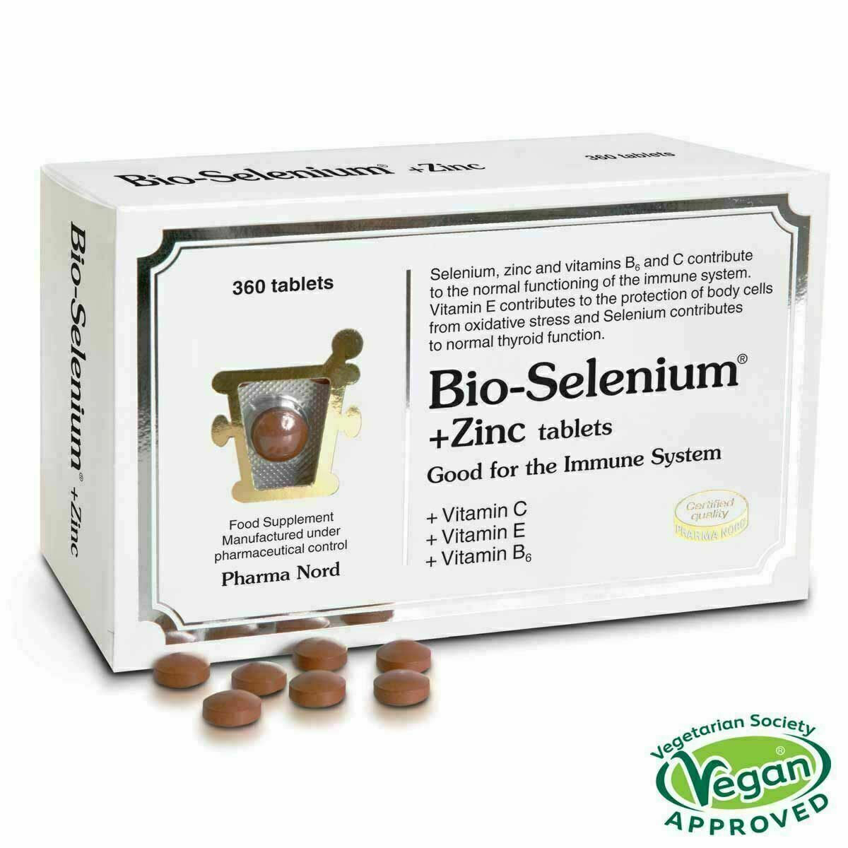 360 Bio Selenium and Zinc Tablets With Vitamin C, E B6. Condition is New. Dispatched with Royal Mail 2nd Class. The ideal antioxidant complex For a properly functioning immune system Protection against oxidative damage including damage caused by man made pollution Contributes to a stable blood sugar Supports normal vision Bio selenium and zinc is the ideal antioxidant complex, as it contains not only pure, organically bound selenium and zinc but also vitamins A, C, E and B6, all of which have properties that contribute to protecting DNA, proteins and lipids against oxidative damage. Bio selenium and zinc may even be used as an alternative to multivitamin preparations with beta carotene, a nutrient that smokers may want to (zinc gluconate), vitamin c (ascorbic acid), microcrystalline cellulose, selenium (selenoprecise yeast), vitamin e (d-alpha tocoferyl succinate, water soluble), vitamin a (retinyl acetate), hypromellose, silicon dioxide, talc, vitamin b6 (pyridoxine), zein, magnesium stearate, iron oxide, titanium dioxid