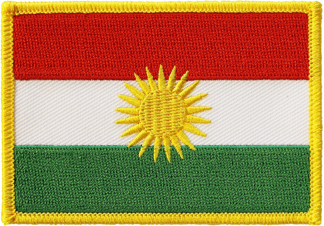 Our rectangular patch features the Kurdistanflag with a gold embroidered border. The patch can be sewn on or ironed on. Actual size is approximately 2.25" x 3.25".