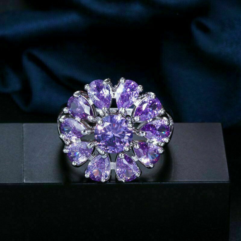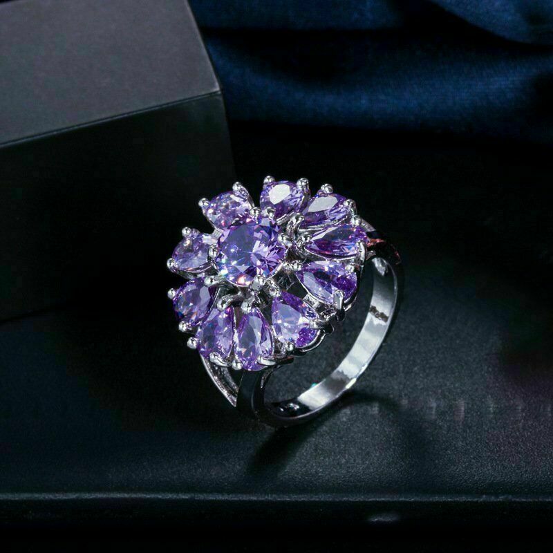 Halloween Spezial -4Ct Rund Birne Amethyst Verlobungsring 14K Weiß Gold Über