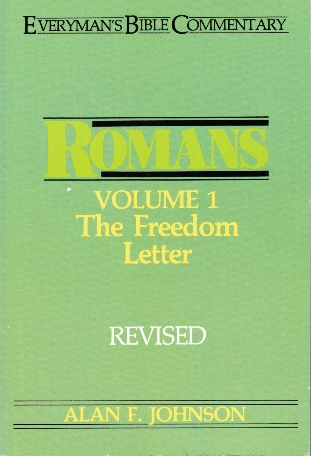 Product description: The book of Romans is one of the best-loved books in the entire Bible. Paul's explanation of the doctrine of justification by faith is rooted deep within the hearts of most Christians. Further, the acknowledgment that we are not under law, but under grace has given Christians freedom from the bondage of legalism for centuries.However, Romans is a complex book filled with difficult theology. To make this revolutionary book more accessible to the common man, Alan Johnson has written Everyman's Bible Commentary on Romans. The original two volumes are now combined into one complete volume. The commentary is also updated, expanded, and revised. The easy style and careful presentation make this an excellent commentary for laymen and pastors alike.Study Paul's discussion of the believer's new life in Christ, with their release from sin and death, and the faithfulness of God. Be encouraged and strengthened with a more in-depth understanding of your position before Christ with this commentary on Romans.