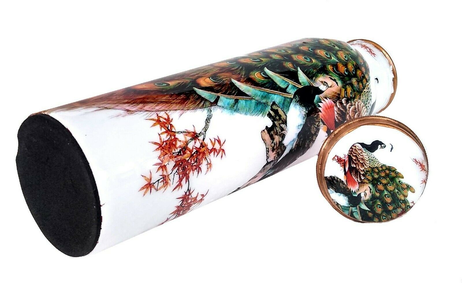 Rastogi Handicrafts pure copper screen printed Water bottle 950 ml added to cart.