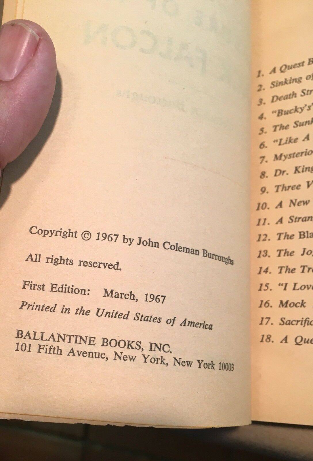 Treasure Of The Black Falcon U6085 John Coleman Burroughs 1967 signed