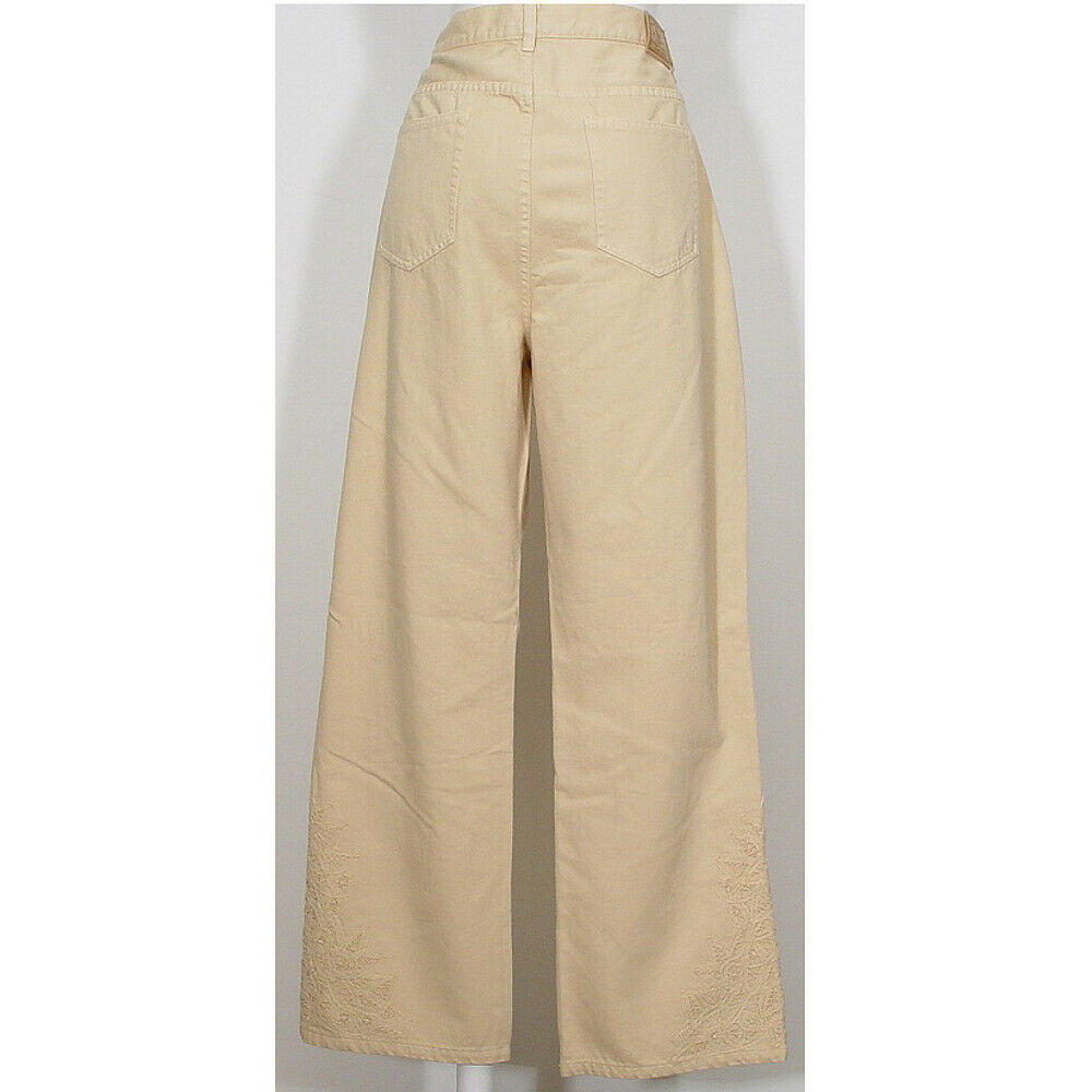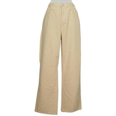 RALPH LAUREN Sand Battenburg Lace Trim Pants Wide Leg Jeans 20W