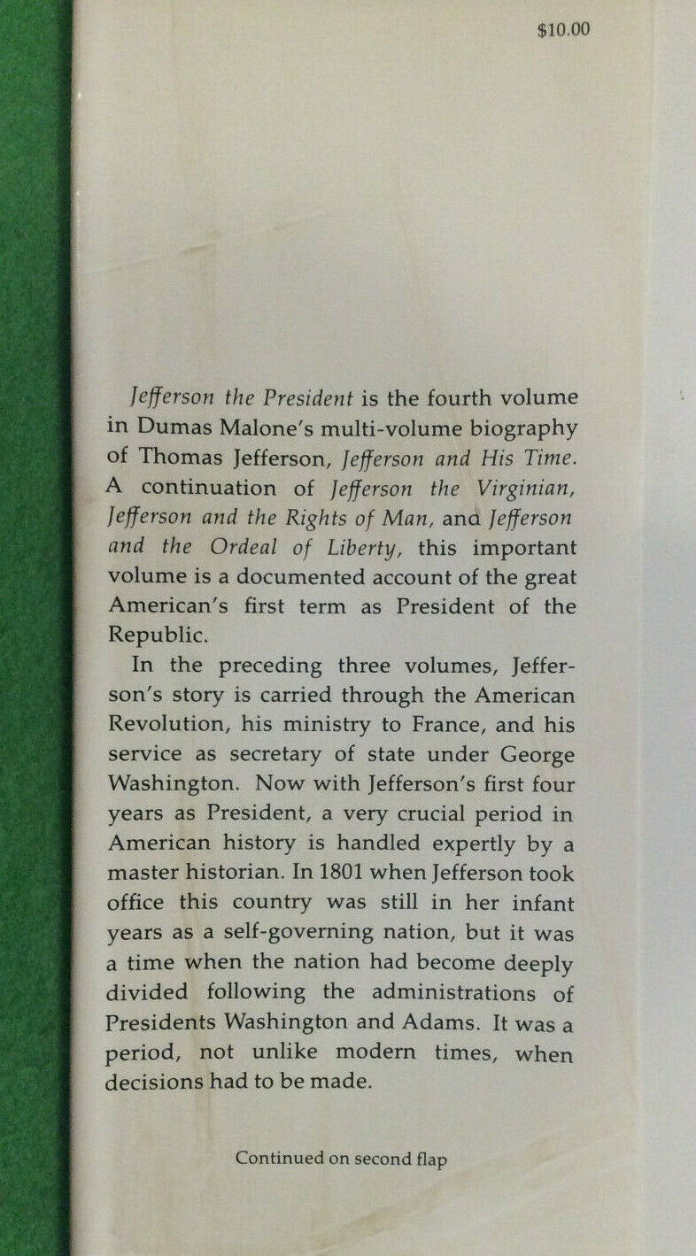 JEFFERSON THE PRESIDENT by DUMAS MALONE - FIRST EDITION - HARDCOVER - VOL 4