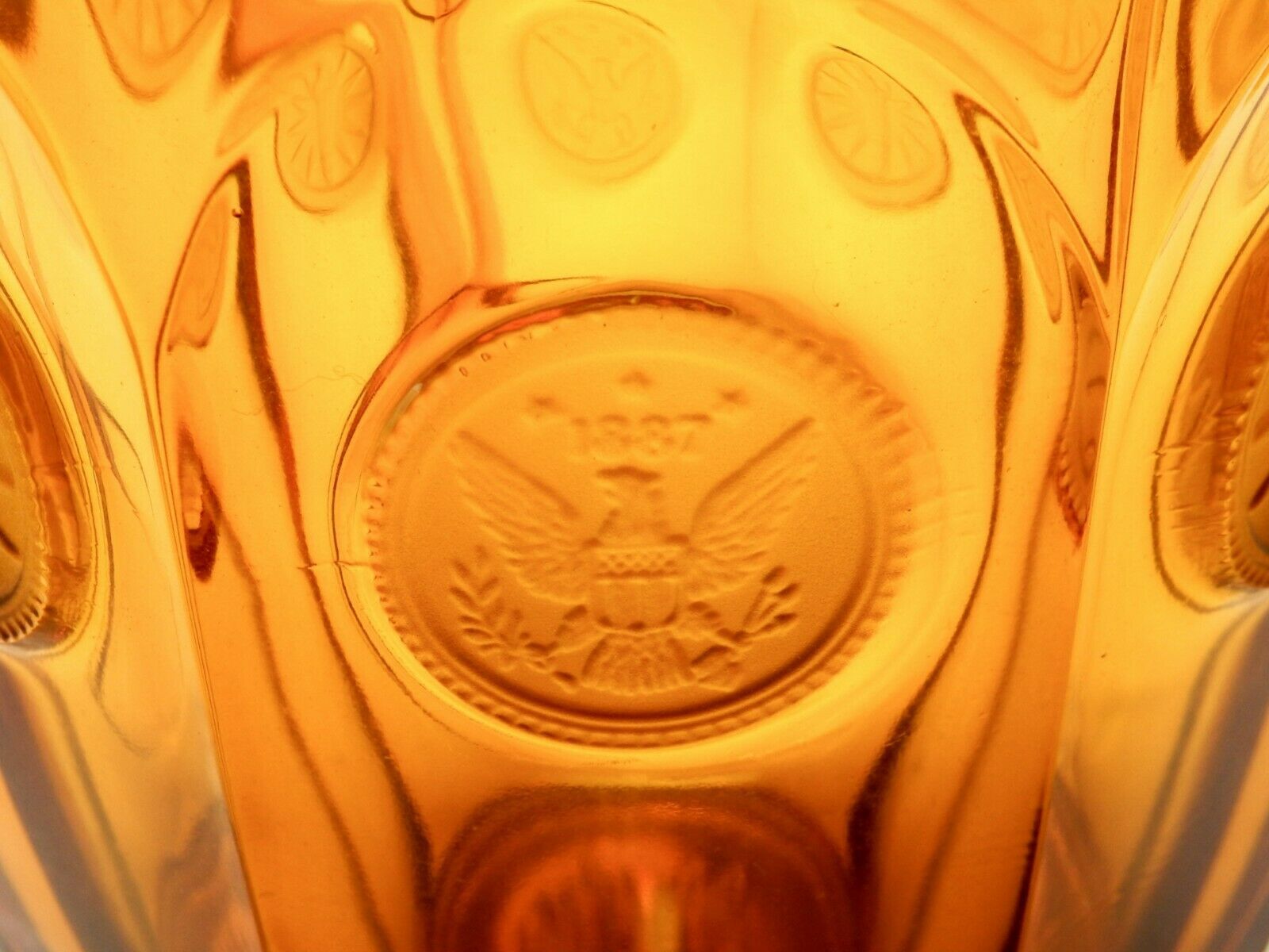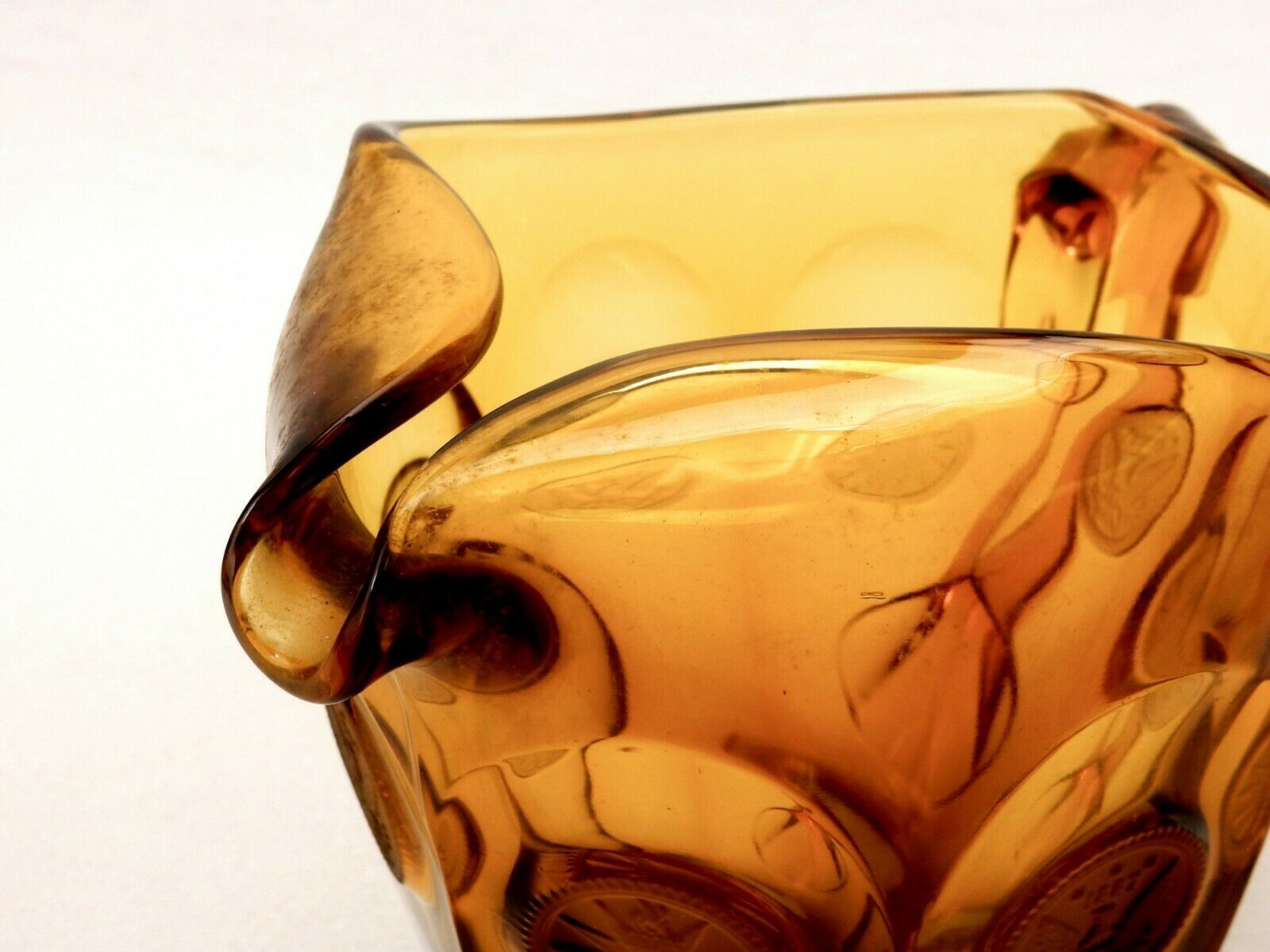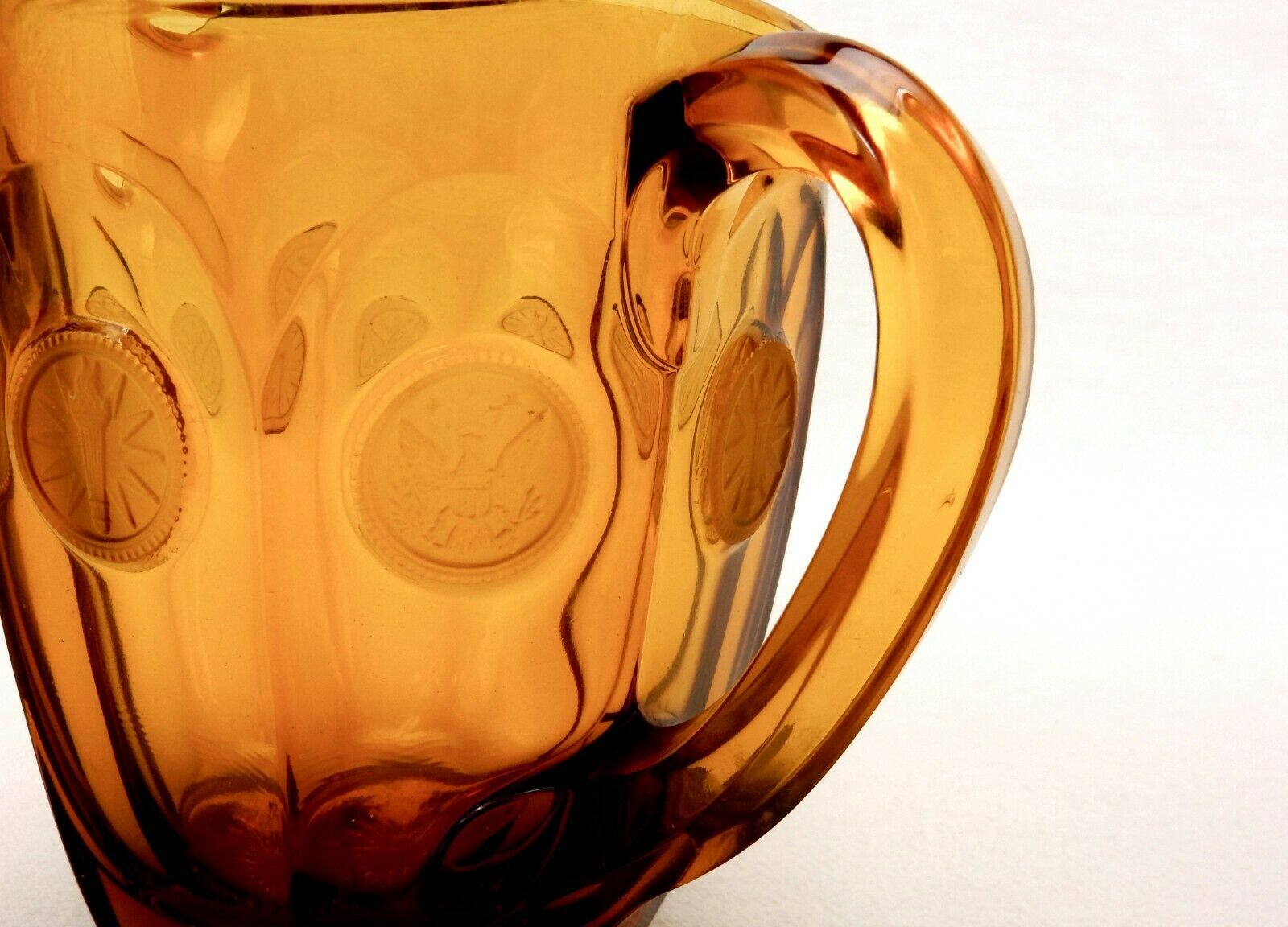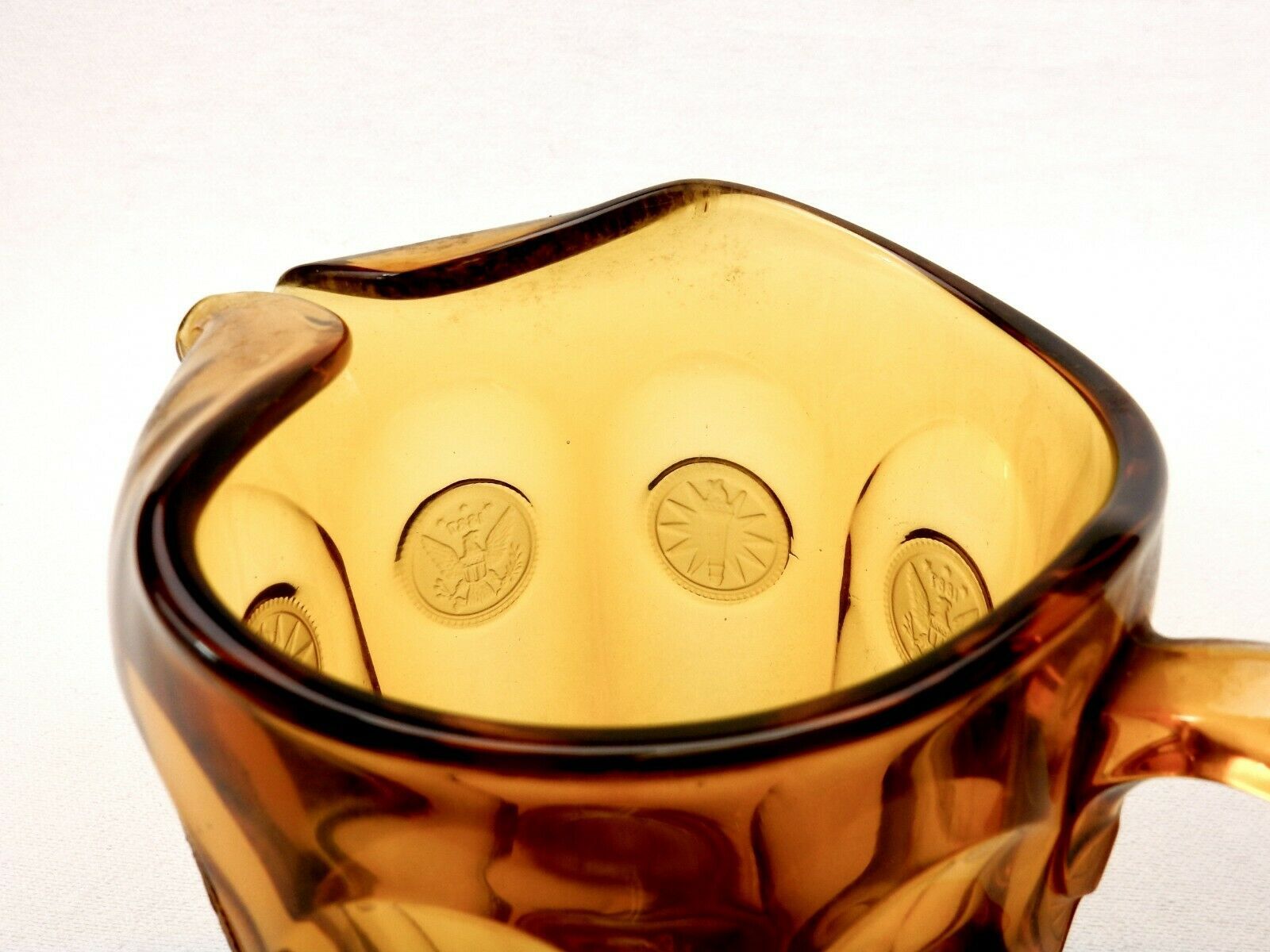 32 oz. Juice/Milk Pitcher, Fostoria Golden Amber Coin Glass, 8 Arched Panels