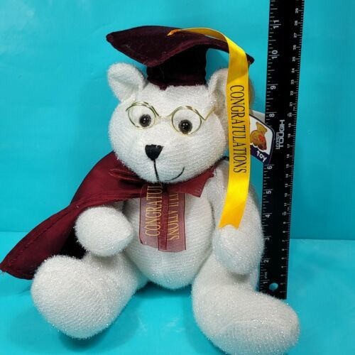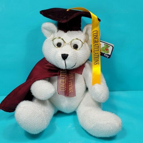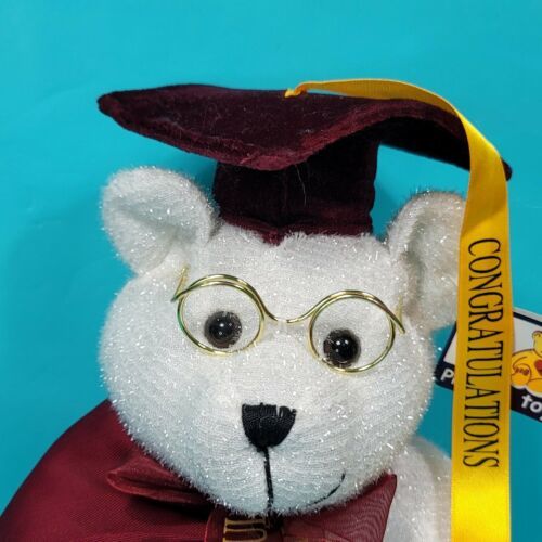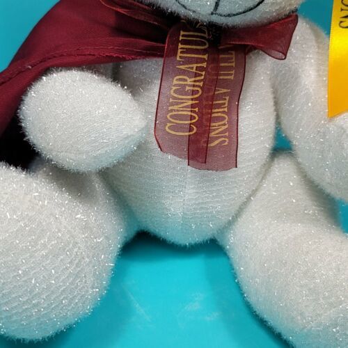 Teddy Bear Graduation Hat Tassel Glasses Glitter White Body Plush Stuffed w/ Tag