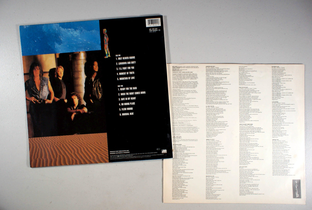 Unusual Heat, by Foreigner, was recorded at several different studios across the state of New York and England, and produced by Terry Thomas and Mick Jones, it was the only album with lead singer Johnny Edwards. He replaced original lead singer Lou Gramm after the latter had parted company in 1990. Edwards, a veteran singer who'd done a tour of duty with Montrose and was then the frontman for another Atlantic act, Wild Horses. Unusual Heat peaked at No. 117 on the Billboard 200 chart, with two singles released from the album, Lowdown and Dirty, which was a No. 4 Mainstream Rock chart hit and I'll Fight For You.
