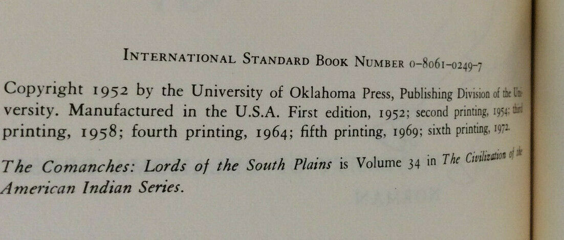 THE COMANCHES by ERNEST WALLACE - HARDCOVER - SIXTH PRINTING