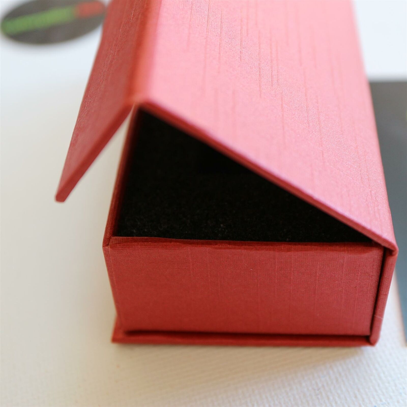 Dimensions L x l x H : 101 mm x 51 mm x 28 mm. Découpe en mousse amovible L x l : 53 mm x19 mm. Couleur : Rubis