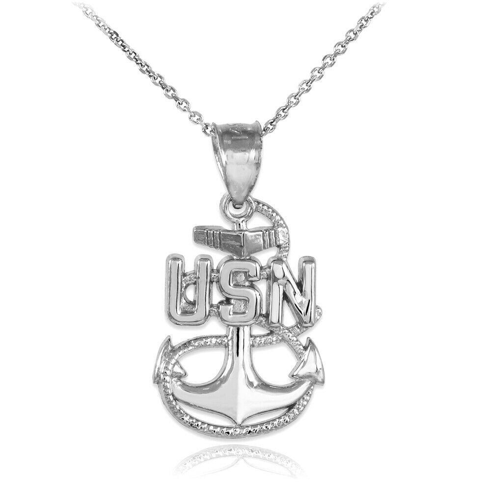 Silver US Navy USN Anchor Pendant Necklace