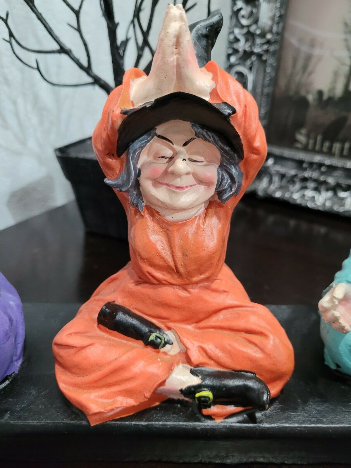 Candy Corn Halloween Yoga Namaste Trio Witches Resin Tabletop Decor 12.75"