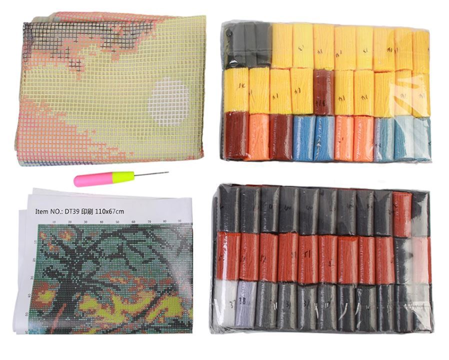 Everything you need to get started right away is already included; printed canvas, pre-cut yarn, plastic hook and instructions. When you are finished, you will have created a beautiful lush rug.