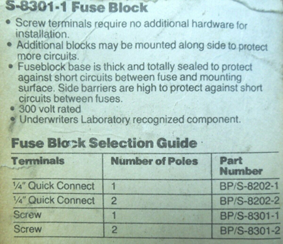 Bussman Fuses Automotive Fuse Block 1 Pole BP/S-8301-1 for 1/4" x 1-1/4" Fuses