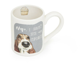 Very cute mug with dog and sprinkles on its nose with the saying "Nope I haven't seen any cupcakes"