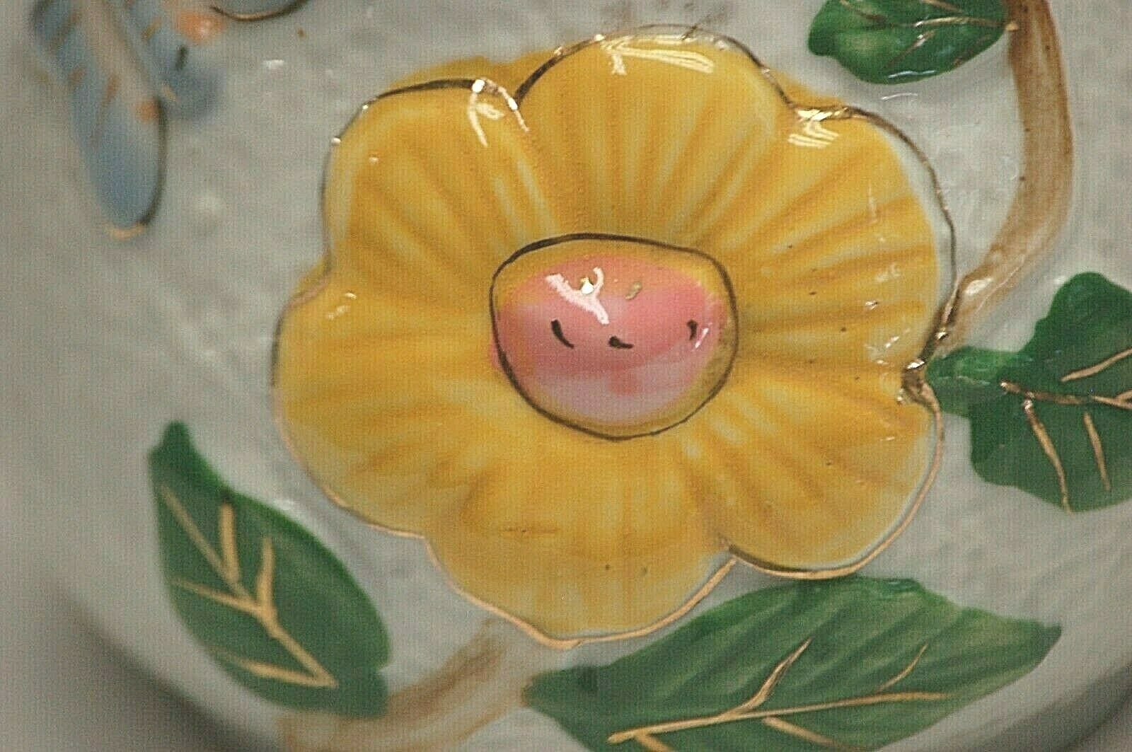 Porcelain Art Pottery Succulent Planter Flower Pot Butterfly Floral Designs
