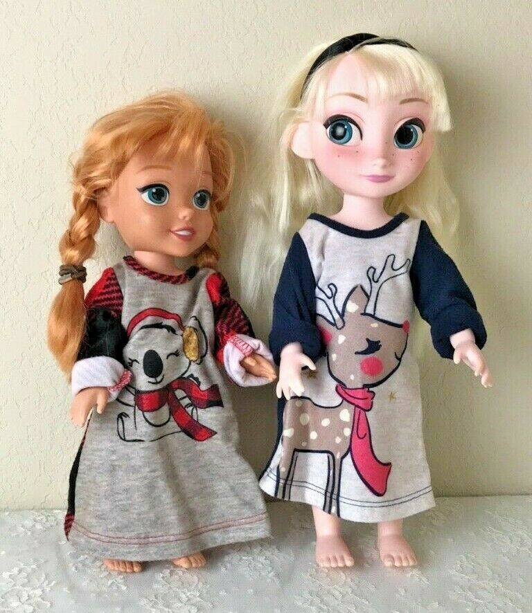 Ana & Elsa Ready for Bed in Christmas Nightgowns 13" & 16"