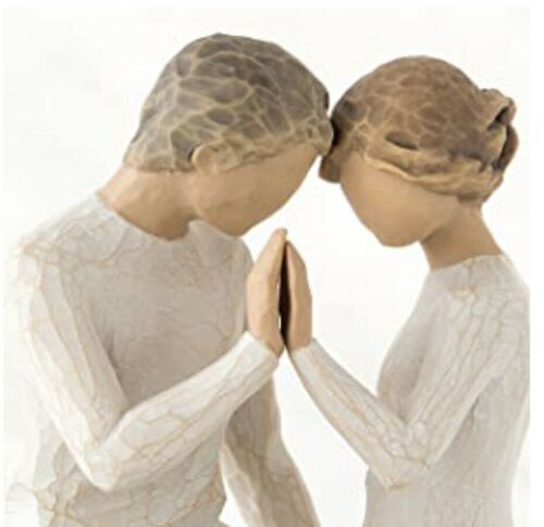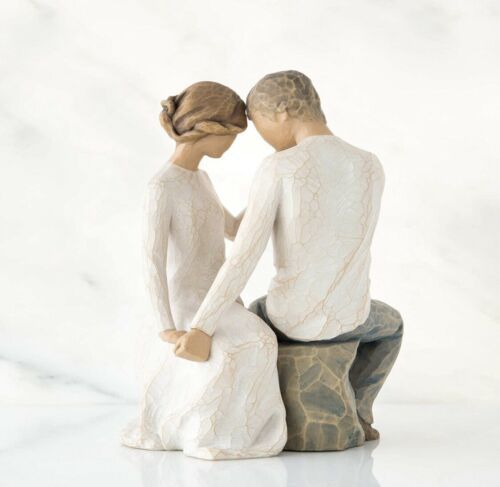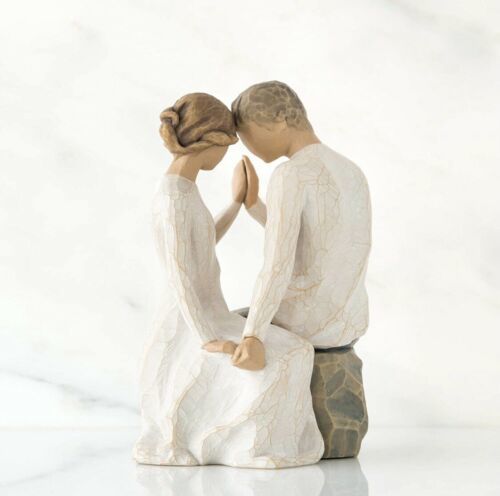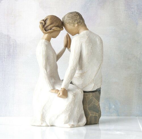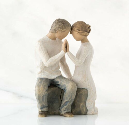 Willow Tree sculptural art forms beautifully express love, closeness, healing, courage, hope… all the emotions of a life well lived. Artist Susan Lordi hand carves the original of each figure from her studio in Kansas City Missouri. Pieces are cast from her original carvings, and individually painted by hand. Expression is revealed through gestures only… a tilt of the head, placement of the hands, a turn of the body. The simplicity of form and absence of facial features signify Willow Tree. It is Susan’s hope that these pieces be meaningful to both giver and receiver.