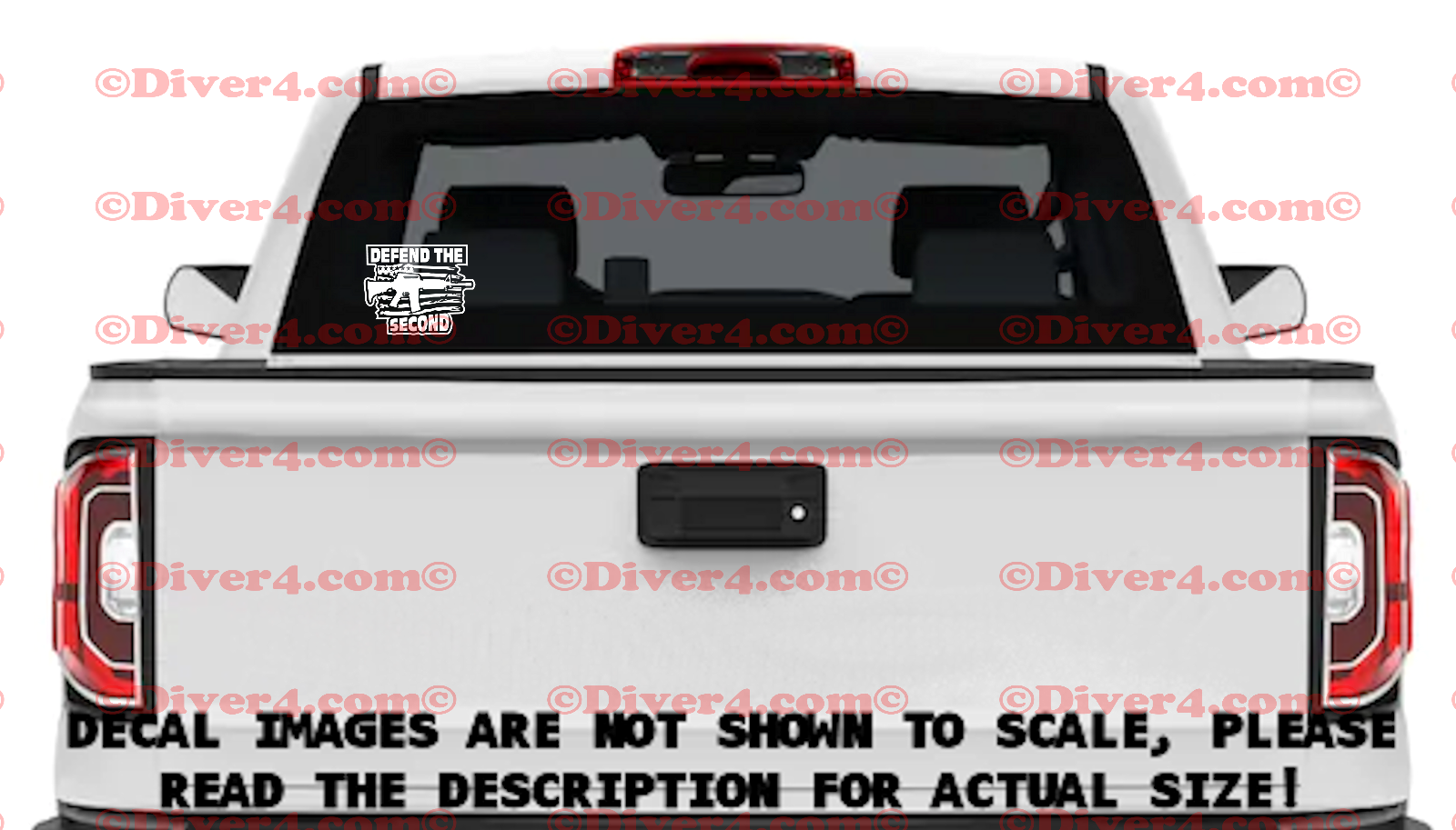 This is a custom Defend The Second in Flag with Rifle vinyl car/truck window decal bumper sticker.