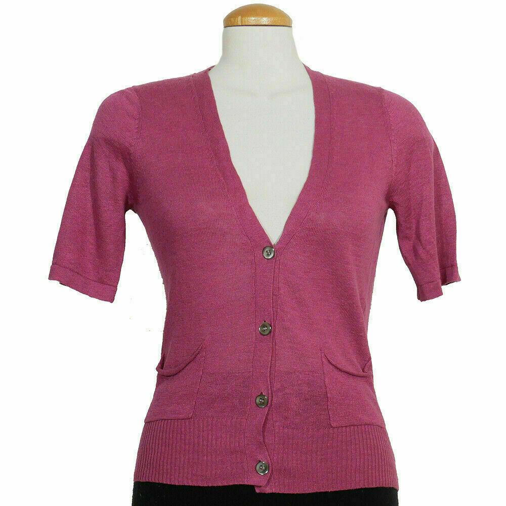 EILEEN FISHER Cerise Pink Silk Linen Jersey V-neck Short Cardigan PP
