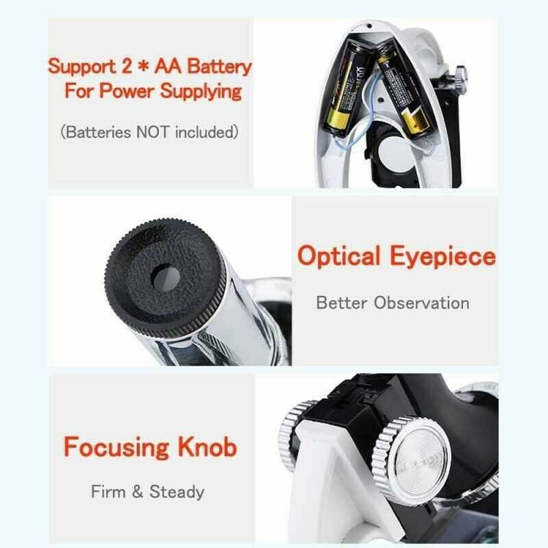 ?Beginner Microscope Kit?: Made of high quality ABS acrylic material. Durable and strong, safe and child-friendly. Easy to operate and imaging clearly. This high definition magnification microscope is suitable for kids beginner. It has double powerful illumination, which has both incident and transmitted LED light sources.
